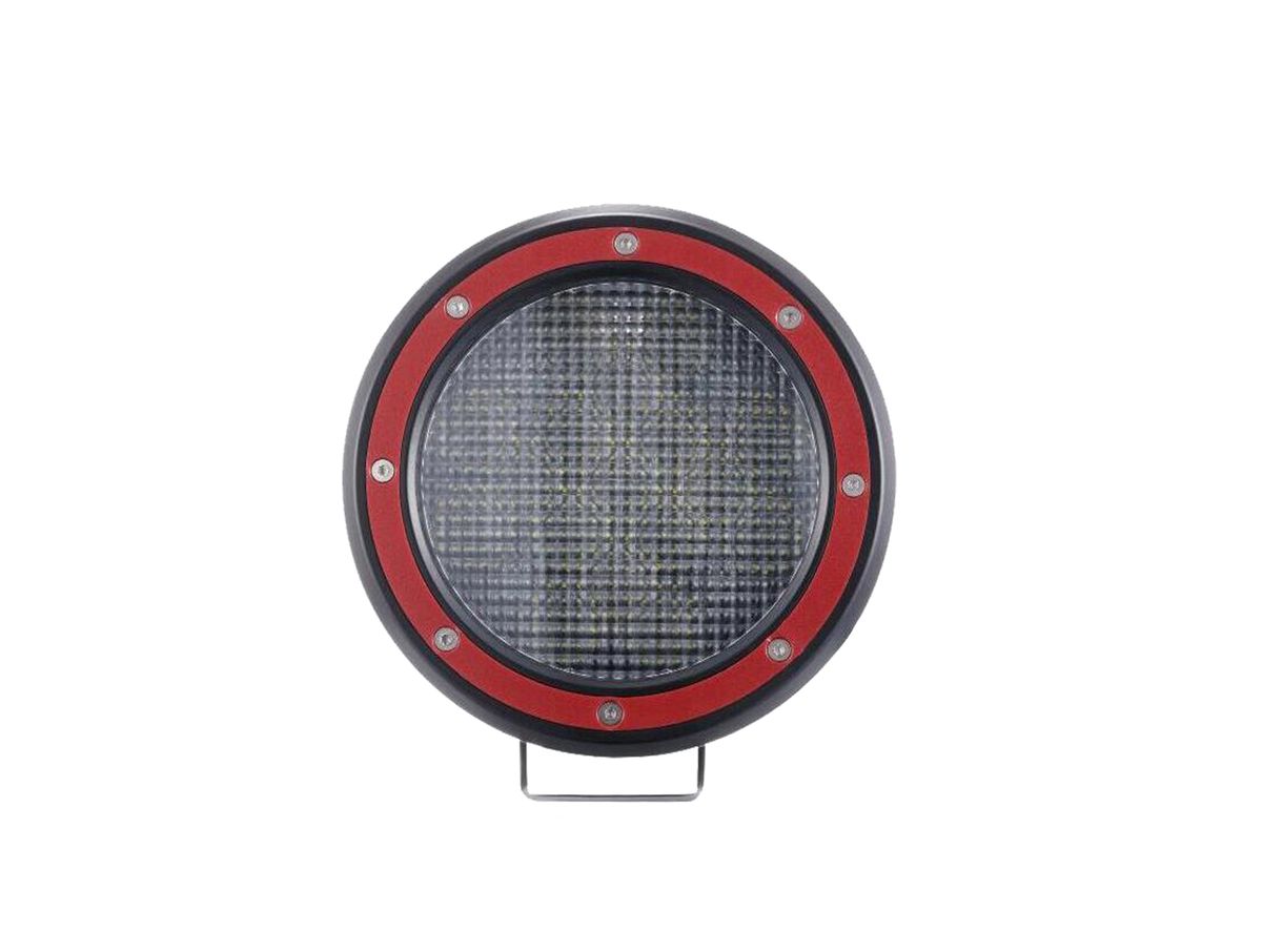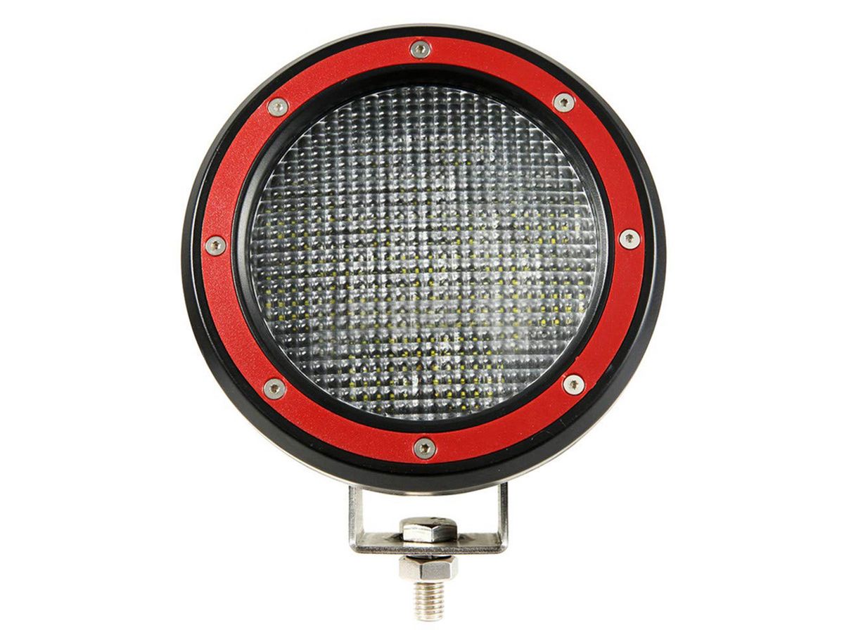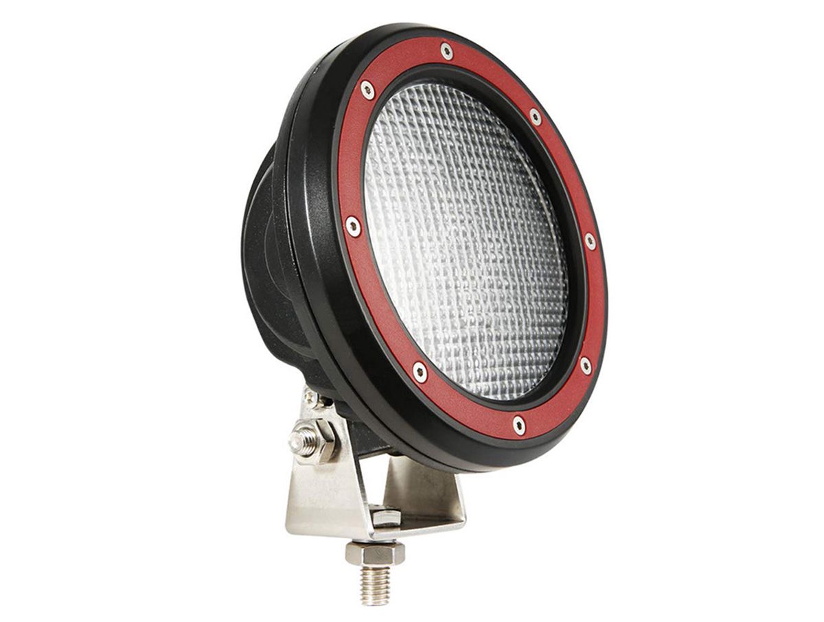 - Includes pair of 5.3" diameter LED flood lights with red trim rings, a wiring harness, and switch