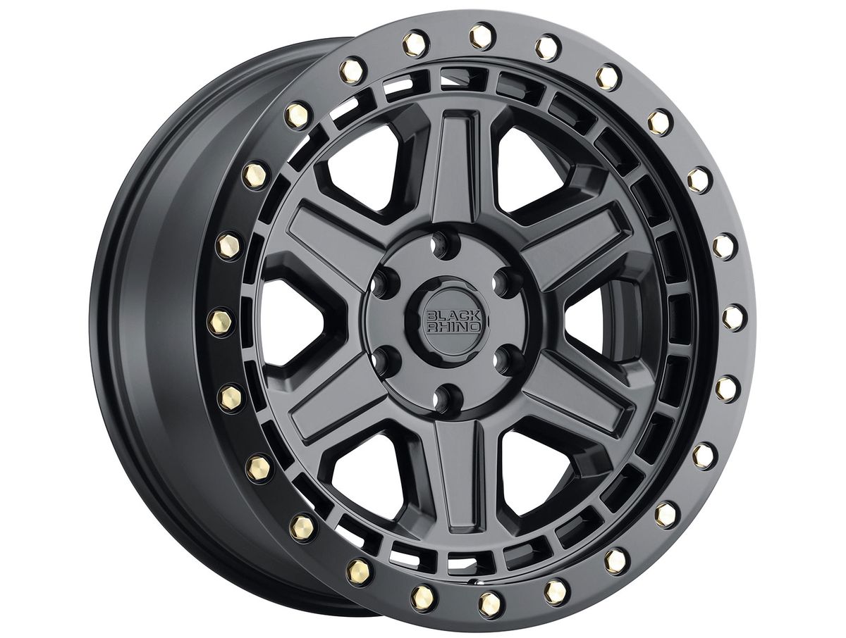The Black Rhino Matte Black Reno Wheels are a new beadlock offroad wheel design from Black Rhino Wheels. The outer lip Features a simulated beadlock lip for any race or adventure. The metal bolt accents and offroad style will look great anywhere.
