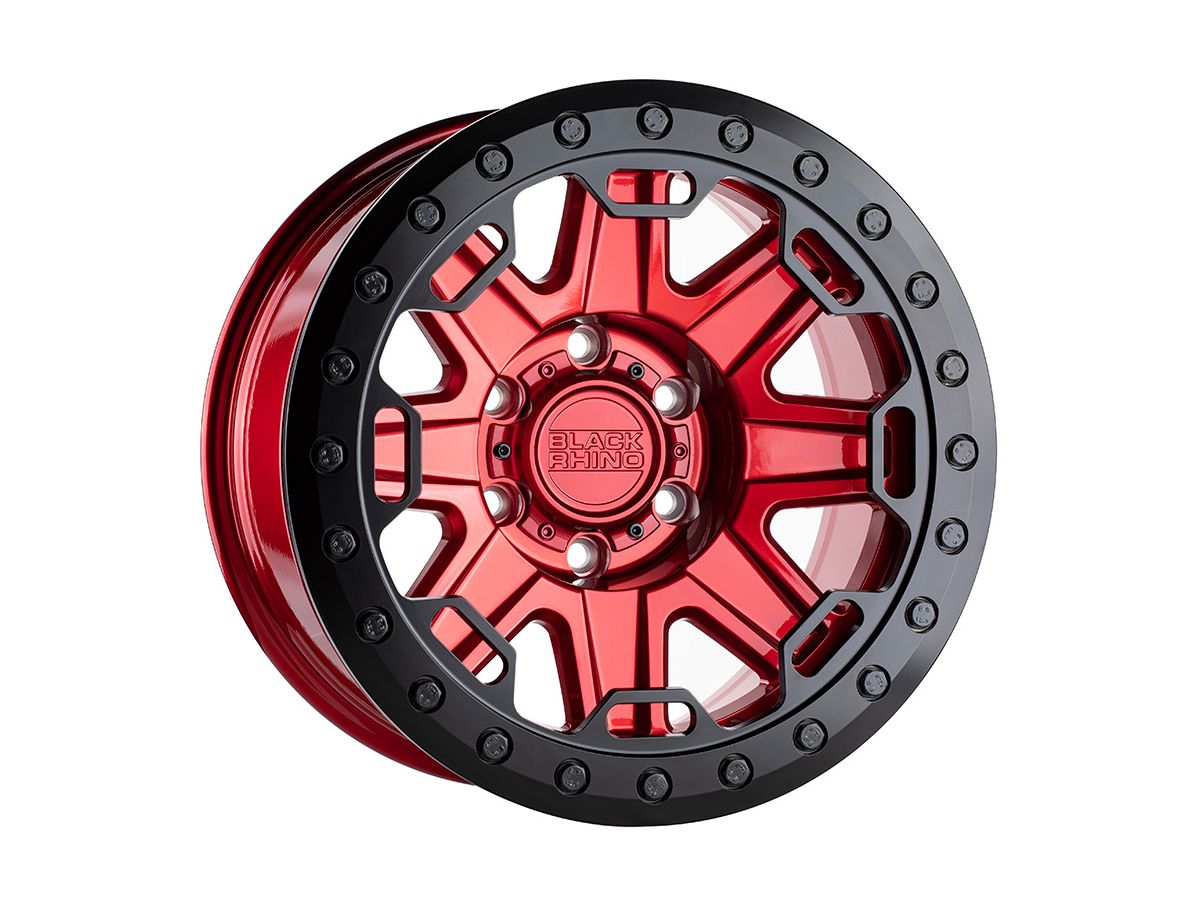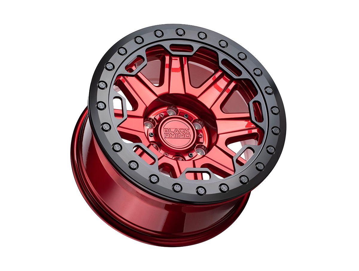 The Red and Black Rift Beadlock Wheels are the latest true beadlock wheel in the Black Rhino lineup. These feature a race/baja inspired style, along with a deep concave profile and bold design made to be used specifically off-road. The beadlock ring and deep concave is what Black Rhino specializes in, and the Rift Beadlock puts those features on display.