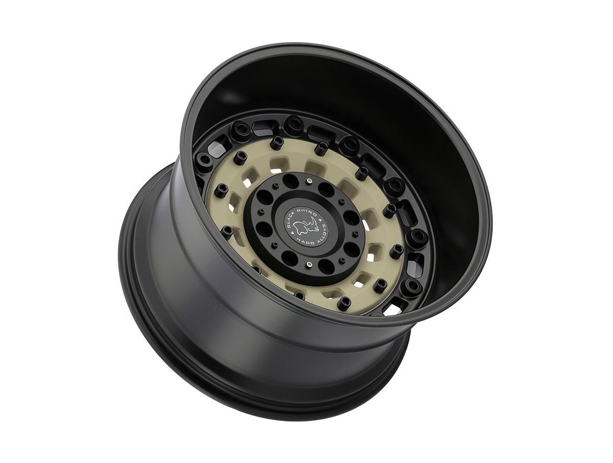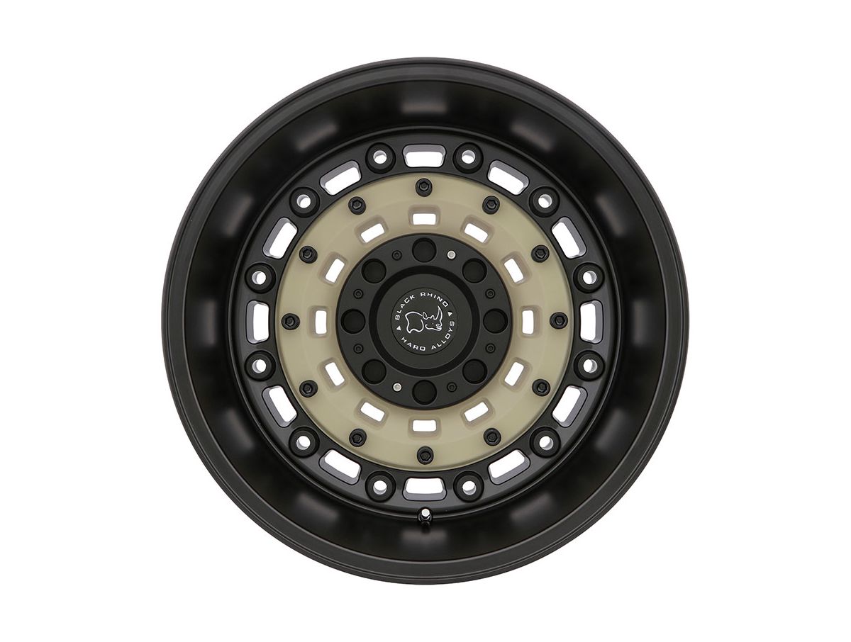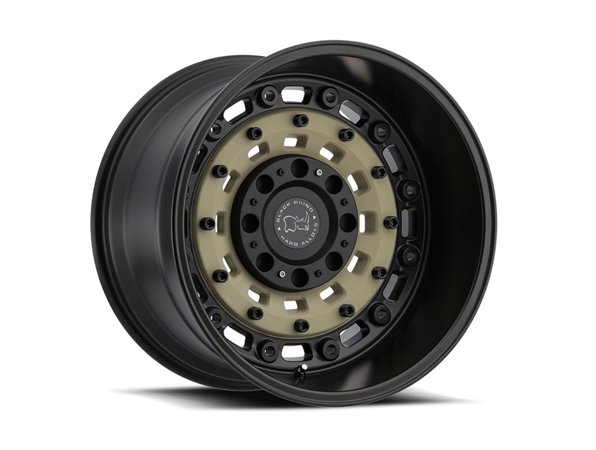 The latest innovation from Black Rhino, the Sand and Black Arsenal, is made from durable cast aluminum finished in matte black wheel face and hardware accented with a stunning matte desert sand insert along the face of the wheel. The spoke-less design of the Arsenal's wheel face gives it a military style look. Available in a variety of bolt patterns, sizes and offsets, you're sure to find the right fitment for your truck's taste.