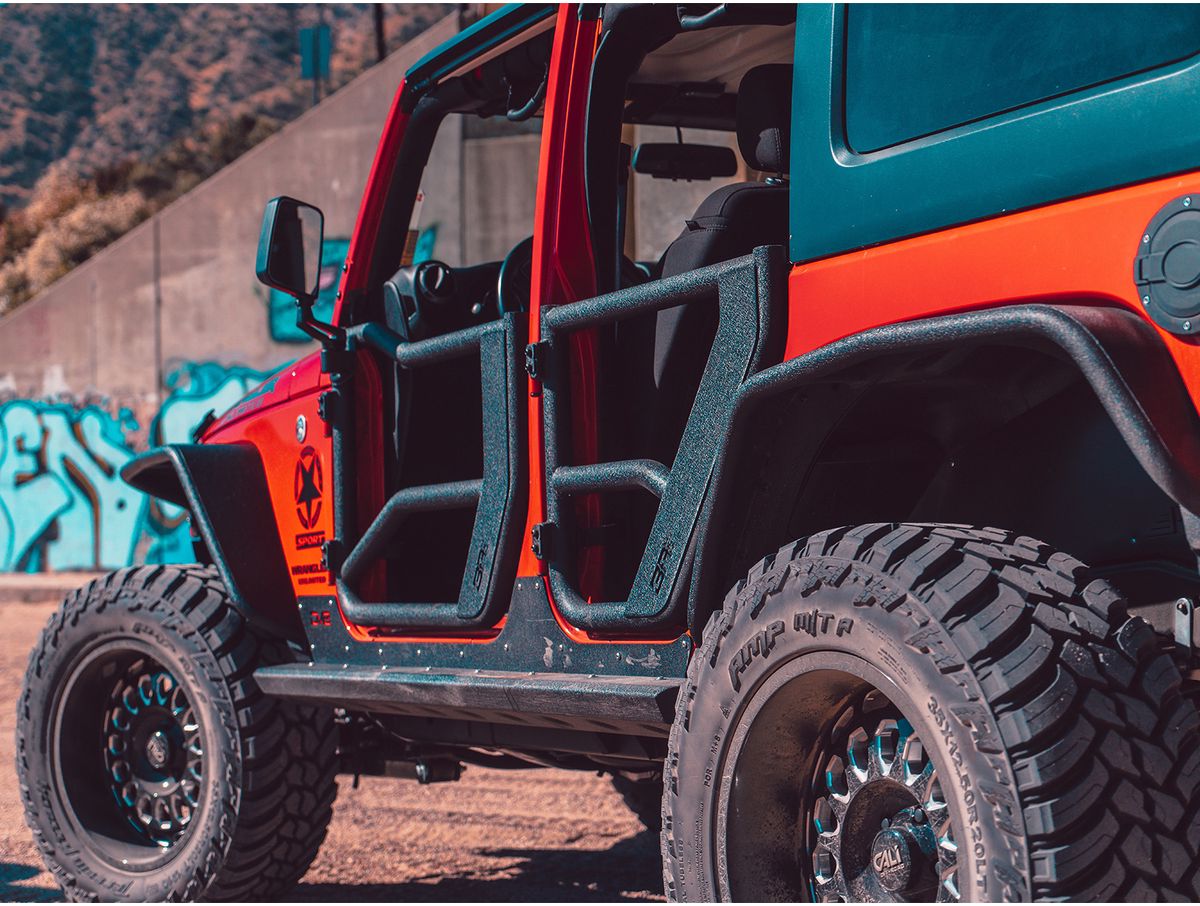 For strength you can depend on when you want to take on the trails, look no further than the Body Armor 4x4 Tube Doors! These 2" diameter steel tube doors are a great option for when you want to take off your factory doors and experience the elements. Much lighter than the full factory doors, these tube doors will fit securely to your Jeep, featuring an internal two-stage latch mechanism for industry leading operation.