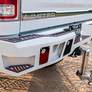 Bodyguard A2 rear bumpers are packed with features. They come with 11-gauge bolt on step pads with the BG logo, corner steps, and LED tag lights. It also has 3/4" shackle mounts with 3/4" recovery shackles. This rear bumper is compatible with your factory hitch and trailer plugs and you still have access to your spare tire. Make sure to select if you would like your bumper to have bumper sensor cutouts. You have the option of ordering this bumper with or without 3" cube light cutouts. Bodyguard test fits its bumpers with Rigid LED lights but other brands may be compatible as well.