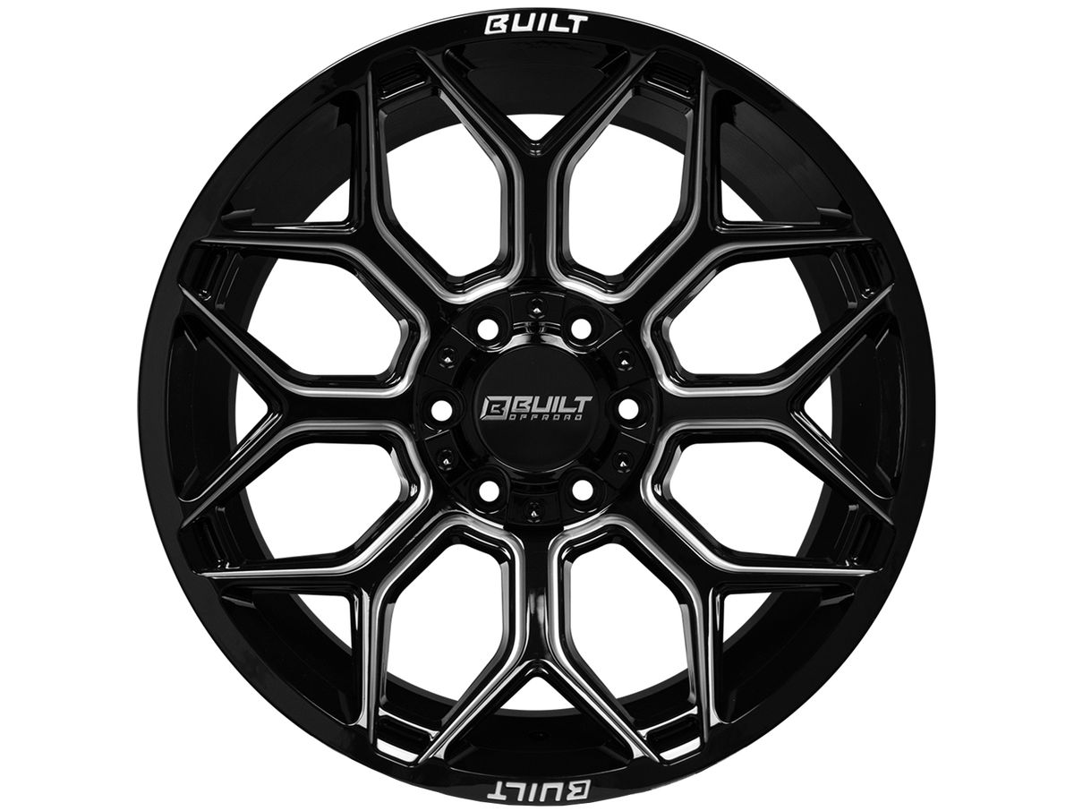The wheel is covered in a gloss black finish that is enhanced by the milled spoke windows. The center cap is adorned with the Built Off-Road logo to complete the look.