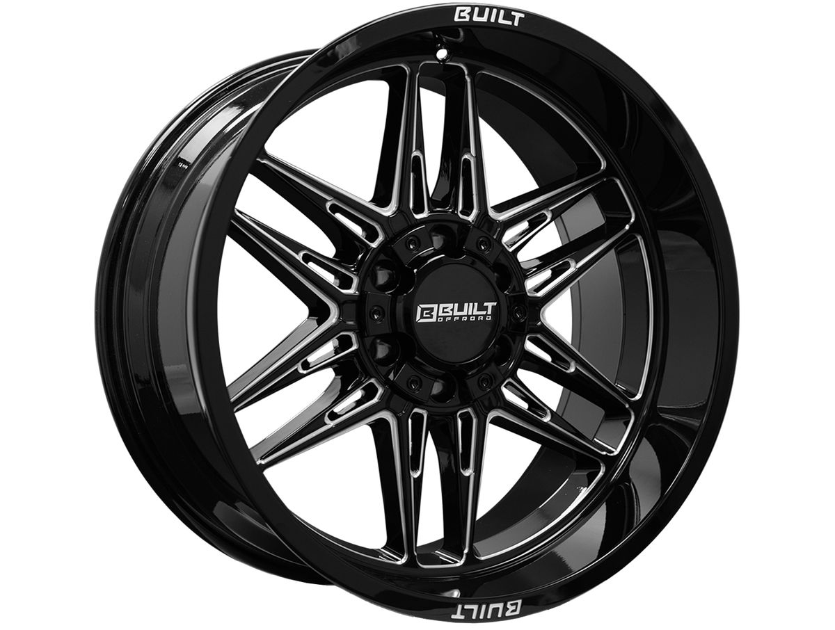The wheel is covered in a gloss black finish that is enhanced by the milled spoke windows. The center cap is adorned with the Built Off-Road logo to complete the look.