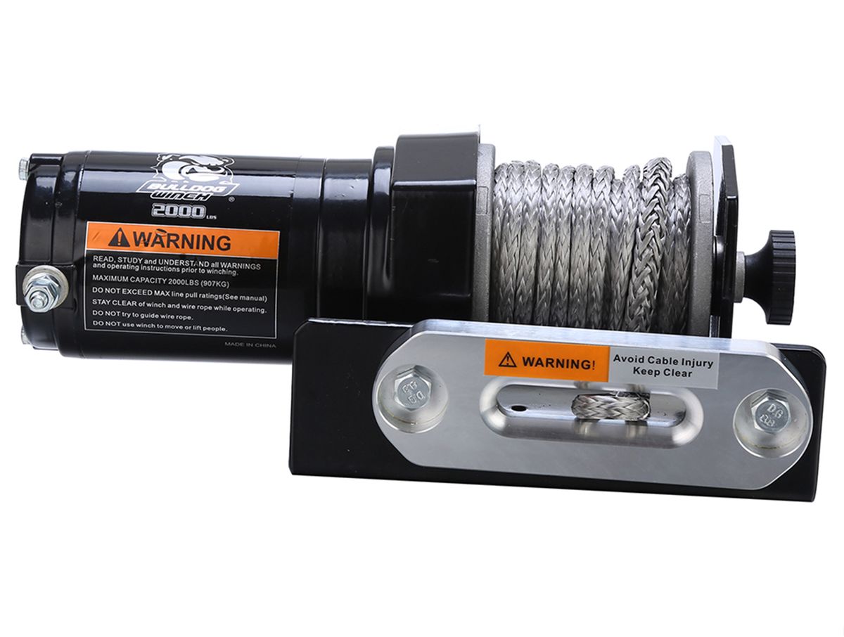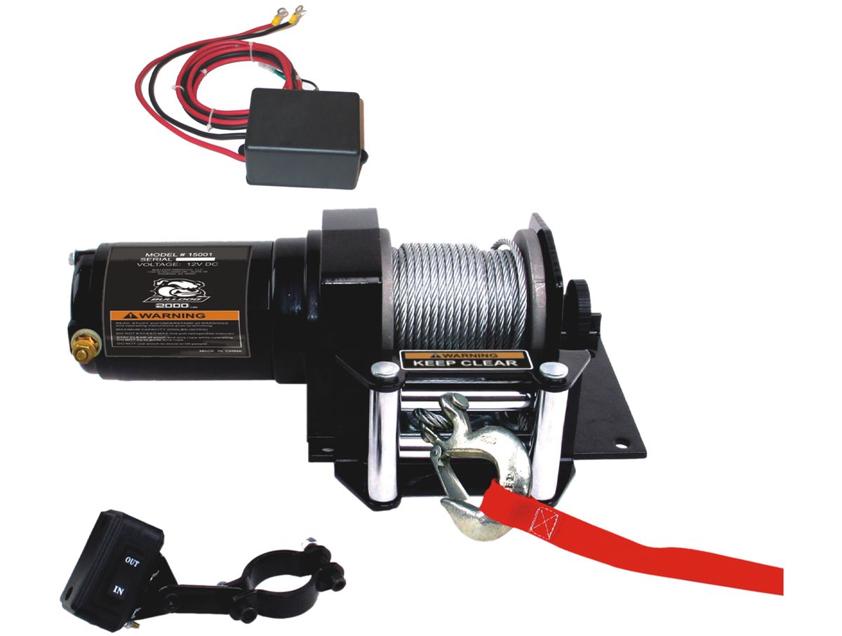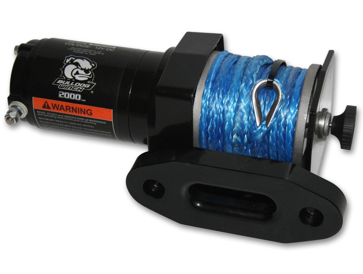 The Bulldog 2,000 LB ATV Winch uses a 1 hp 12V DC Permanent Magnet Motor. The winch motor will recover your ATV with ease and uses your choice of 50' wire rope with a roller fairlead, or 40' synthetic rope with an aluminum hawse fairlead. This winch offers a sealed power unit with dual relays and features a rocker switch for controlling the winch while seated on your ATV. This ATV winch uses dynamic braking and a free spooling clutch to get the rope out faster while reducing the wear on the motor. The recommended power source is a 650CCA battery for maximum power and this winch comes with wiring and hardware needed for installation. This winch is backed by the manufacturer's 2-Year Limited warranty. Order yours today!