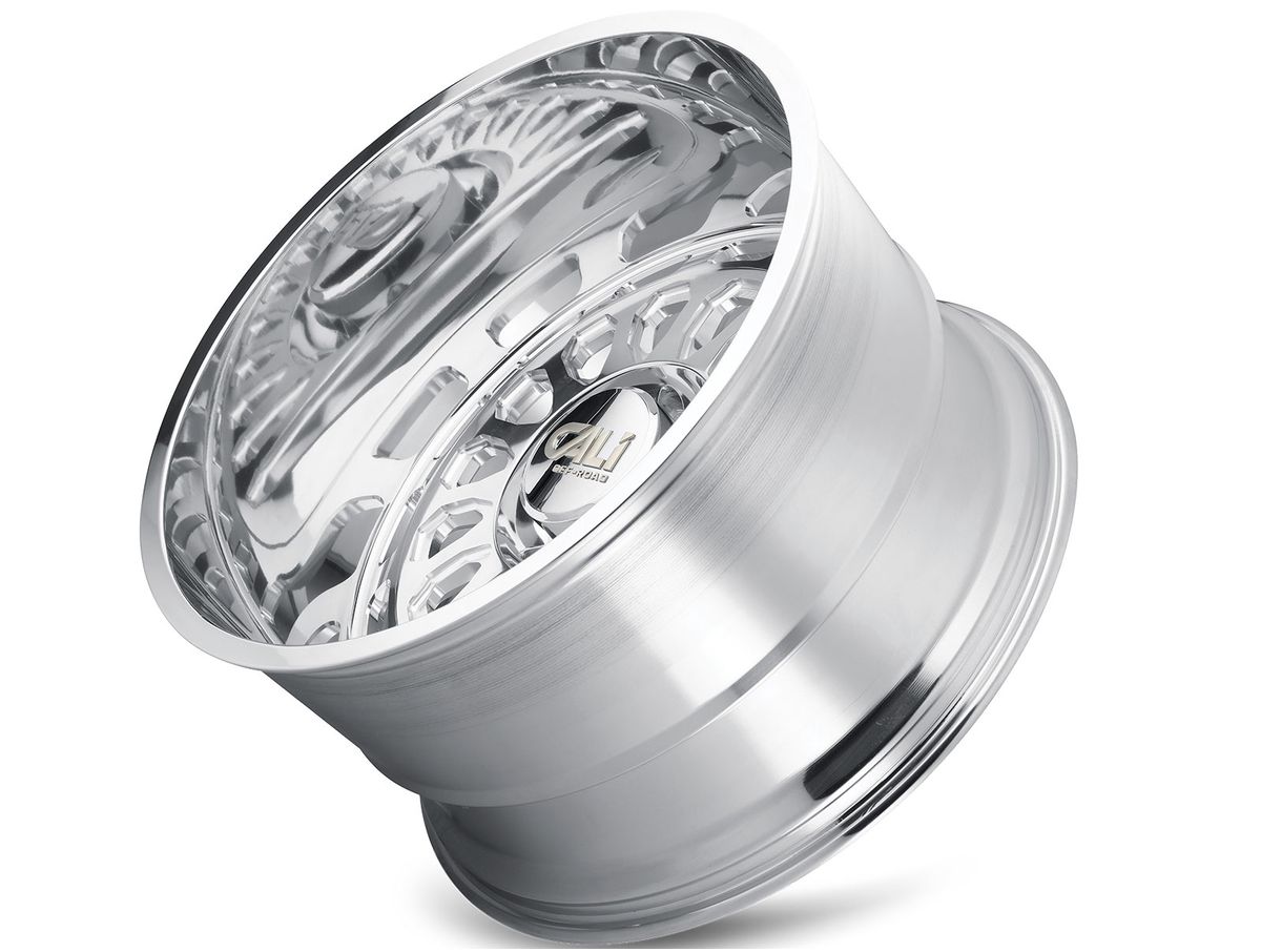 Cali Offroad Polished Paradox Wheels feature a unique and creative design using diamond shaped windows and small spokes to set this wheel apart from others like it. The spokes sport aggressive contours and milled accents around the windows. Deep lips and large diameters are what Cali Offroad specializes in, and the Paradox puts those features on display.