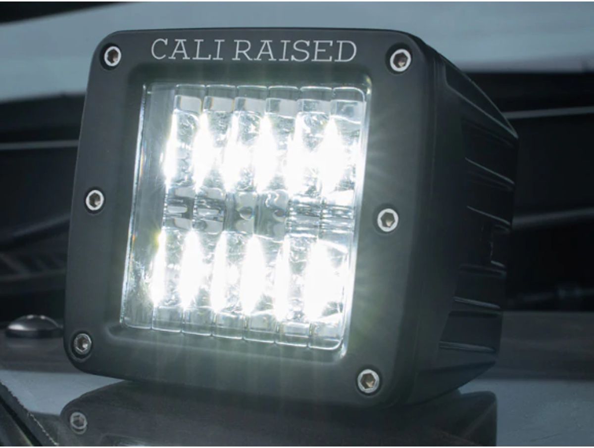 Cali Raised ditch light mounts are a great way to add extra lighting while keeping a low-profile look. They are custom made and are proudly engineered and manufactured here in the USA. All their brackets come powder coated with a glossy black finish and will fit directly into OE locations. So, no need to modify or cut. You can get the mounts only and install other brand lights, but you can save money and pair it up with Cali Raised own lighting line. If you decide to go with the kits Cali Raised offers four different types of lights. 3x2 18w White Spot or Amber Combo LED cube lights, Side Projecting LED Pod lights, or 3.5" LED Flood Round Cannon lights. All are made with diecast aluminum housing, a PMMA lens, and include integrated thermal management. Also rated IP68. So, their built to last. You can also choose from spot, combo or flood lighting patterns. Depending on your model you can also choose from OEM style lighted switches to give you that factory look or the stock wiring kit that comes with their lights. Either way installation and look will be great.