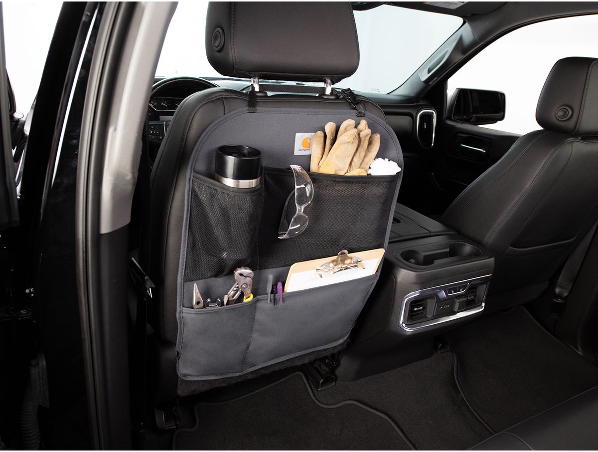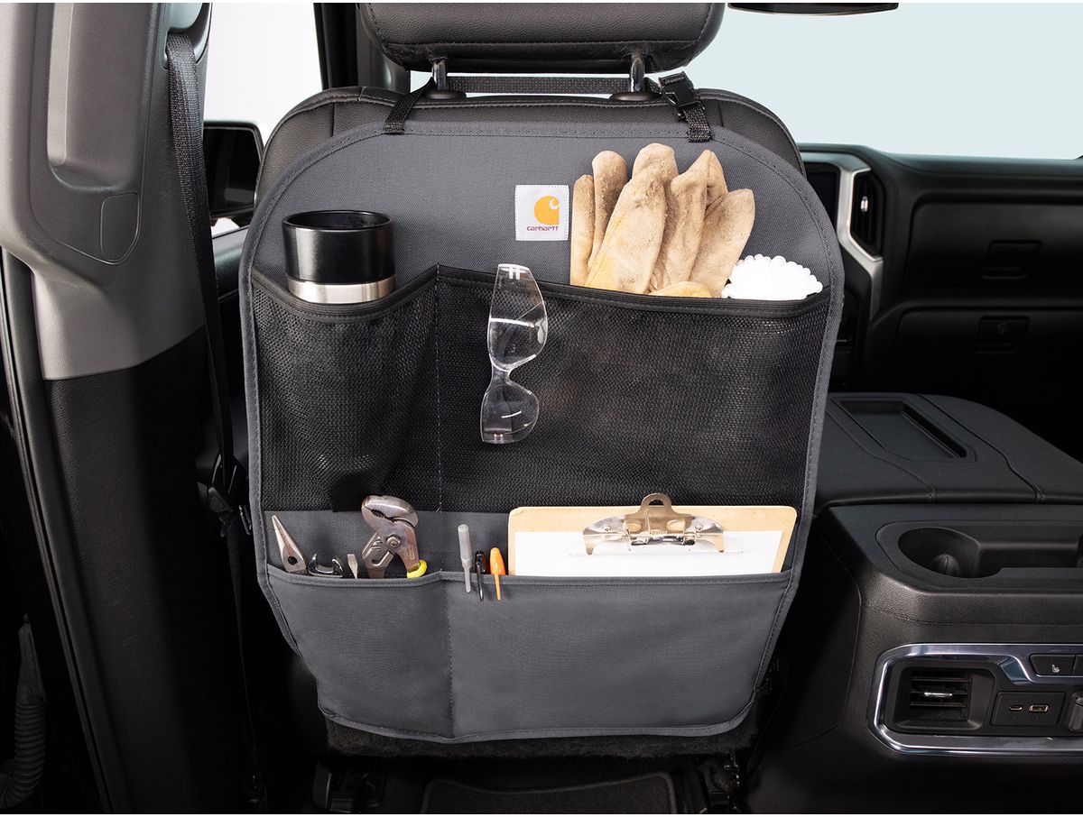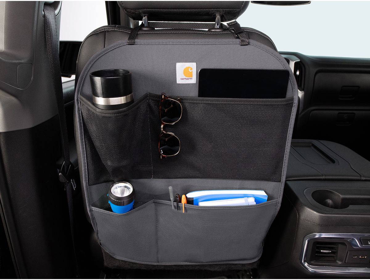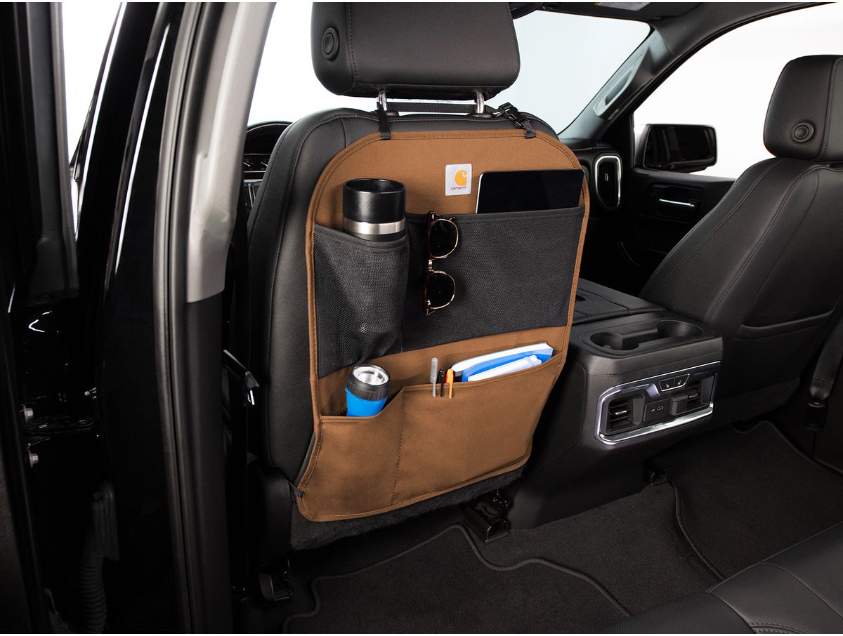 Add rugged Carhartt protection & organization to your vehicle today with the Covercraft Carhartt Seatback Organizer!