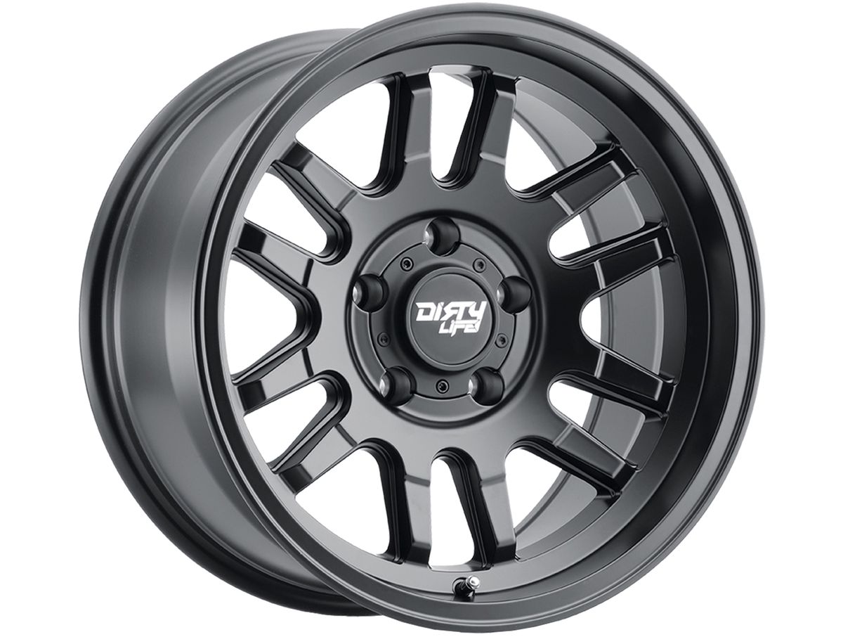 The wheel is covered in a matte black finish and the center cap is adorned with the Dirty Life logo to complete the look.