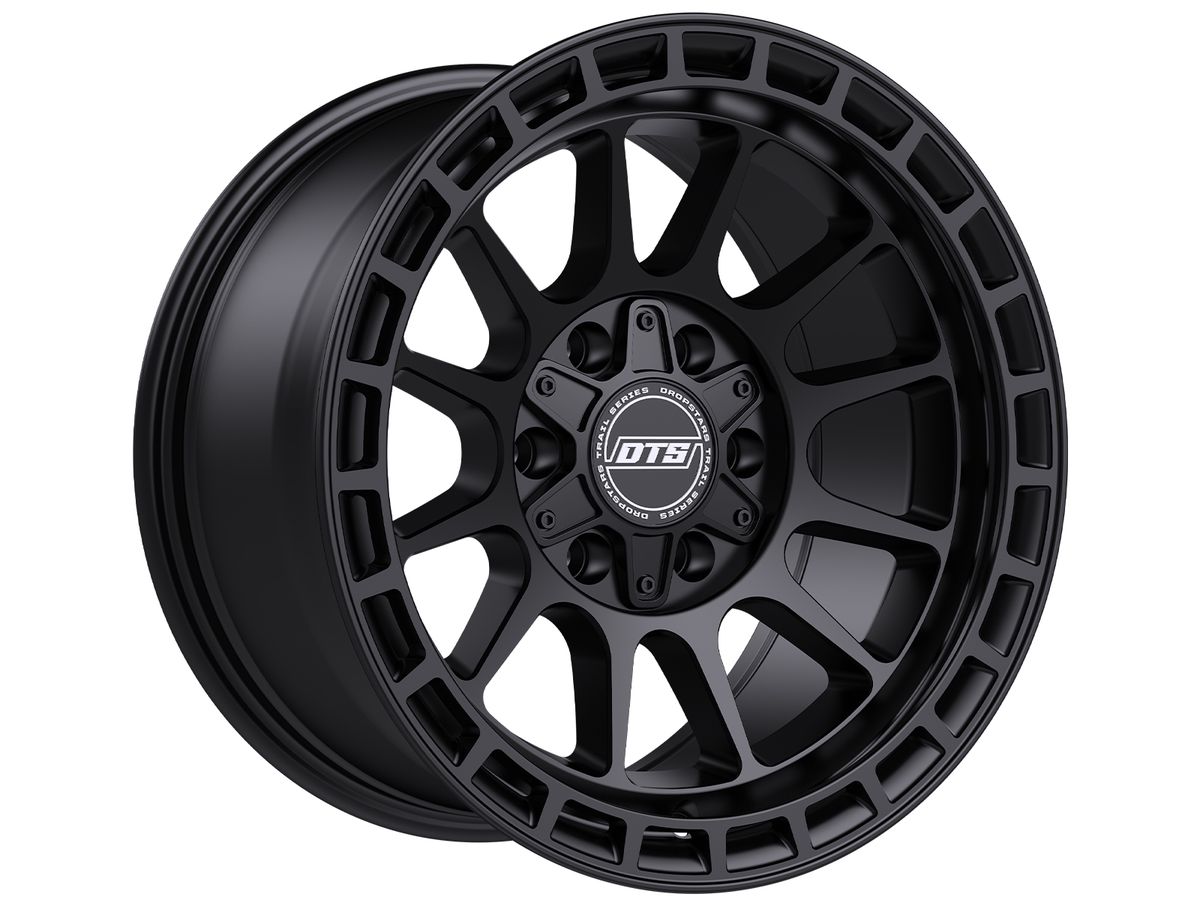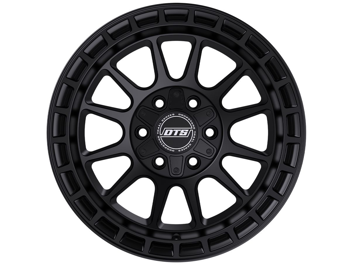 The wheel is covered in a matte black finish that is enhanced by the debris release ring on the outer lip. The center cap is adorned with the Dropstars logo to complete the look.