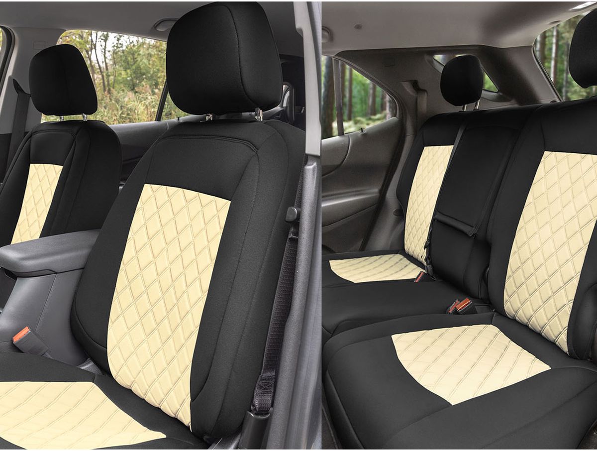 Front row: 2 low-back front bucket seat covers, 2 separate headrest covers