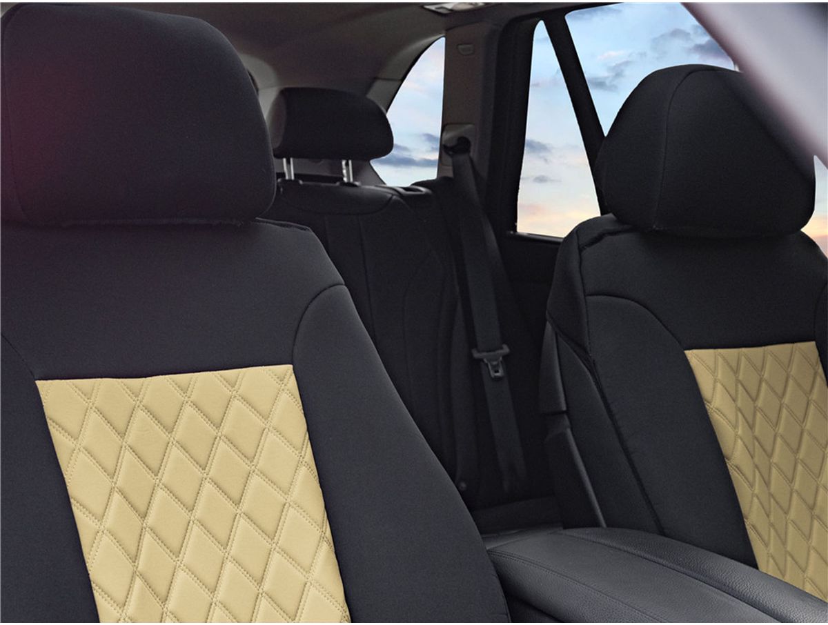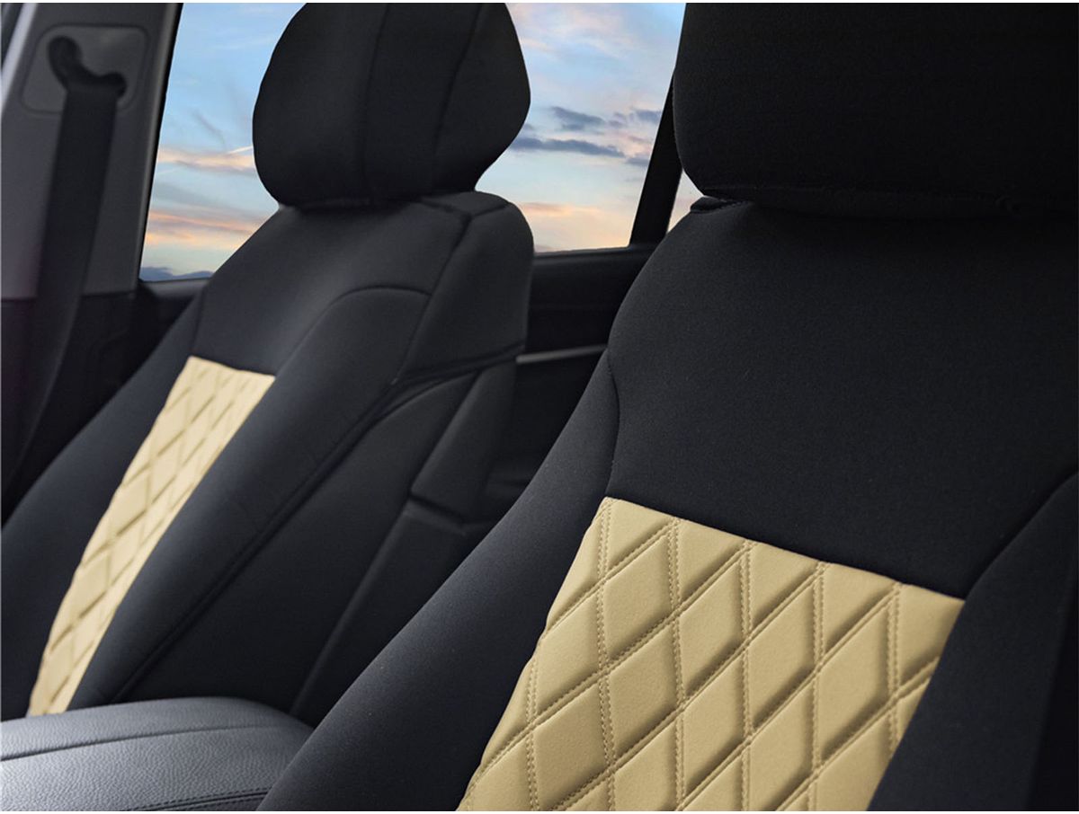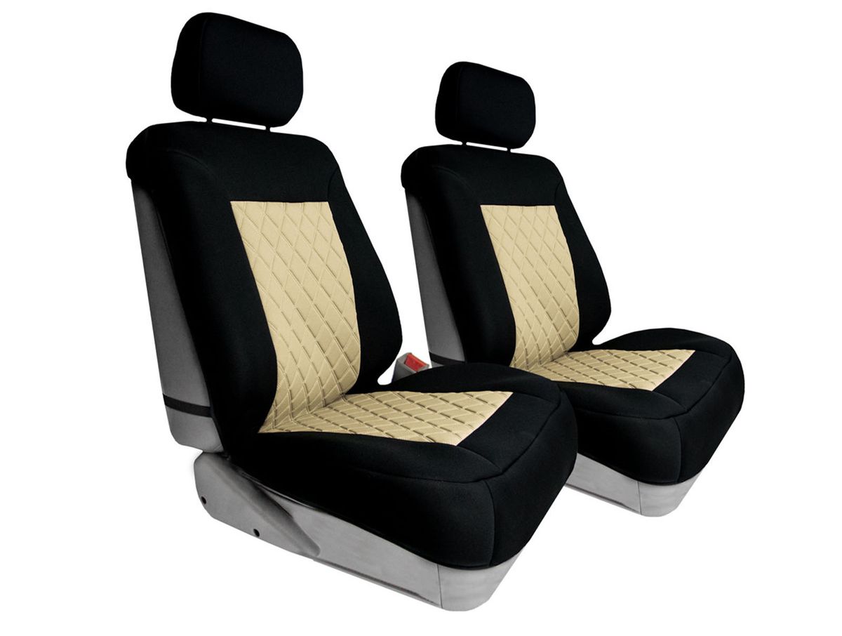 The FH Group Neosupreme Deluxe Seat Covers are universal seat covers that come with a thick diamond-stitch design with 5 different colors to choose from. They are constructed from Neopsupreme material, meaning that they are water resistant, durable and will last for many years to come. They feature built-in foam padding, allowing you to remain comfortable while traveling in your vehicle. Thanks to the anti-slip backing, you will not slip and slide while using these seat covers as well. Thanks to the side-less design, your airbags will be able to deploy safely if needed. Each set includes two front bucket seat covers, two headrest covers & butterfly discs to secure the seat covers, providing a snug, tight fit. Please note that these are only compatible with seats that have removeable headrests. They are super easy to maintain and can be machine washed and air dried without ruining them. FH Group offers a 180-day warranty for these seat covers, and they are proudly made here in the USA.