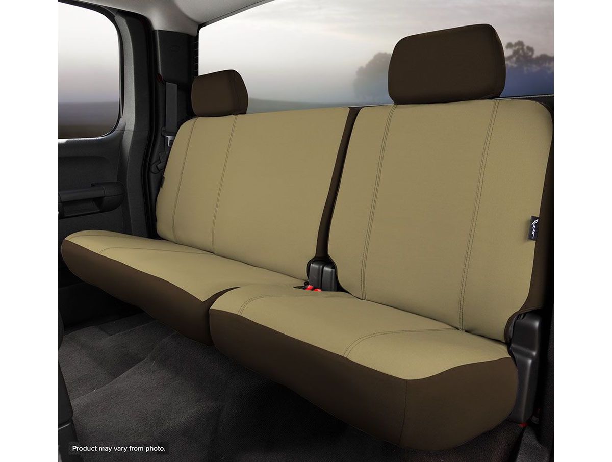 If you are looking for a heavy-duty seat cover that is geared towards industrial use, work trucks, & commercial fleets, then check out the Fia Seat Protector Seat Covers! Whether you work in construction or an industrial field, these seat covers are designed with hard workers in mind. They are constructed from a commercial grade double stitched polyester fabric that is laminated to a waterproof vinyl backing. The covers are water-resistant and UV protected so you don’t have to worry about spills or fading. The advanced form-fit wraparound design has a multi-directional stretch that molds to the contours of your seat and offers years of protection. They come in your choice of black, grey, and taupe (on select applications).