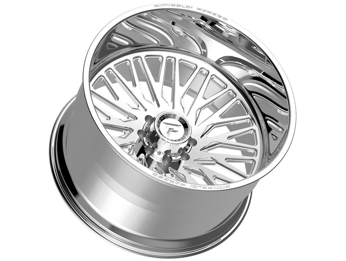 Fittipaldi Off-Road Forged Polished FTF500 Wheels feature a true directional super fine mesh design with a high spoke count on a concave spoke profile which creates an absolutely mesmerizing look. The face of the wheel sits deep within the barrel, emphasizing the aggressive stance and offset. Forged wheels and intricate designs are what Fittipaldi Off-Road specialize in, and the FTF500 puts those features on display.