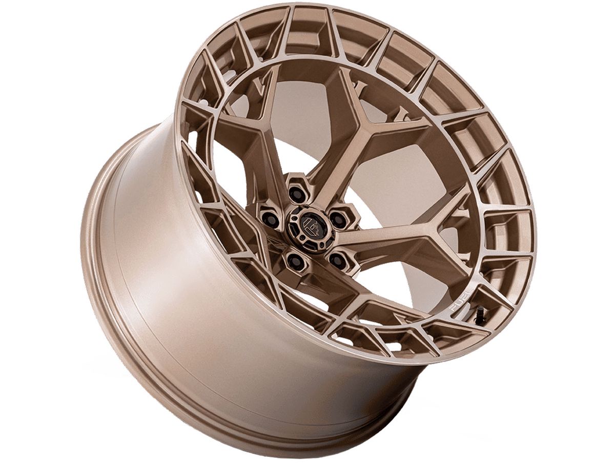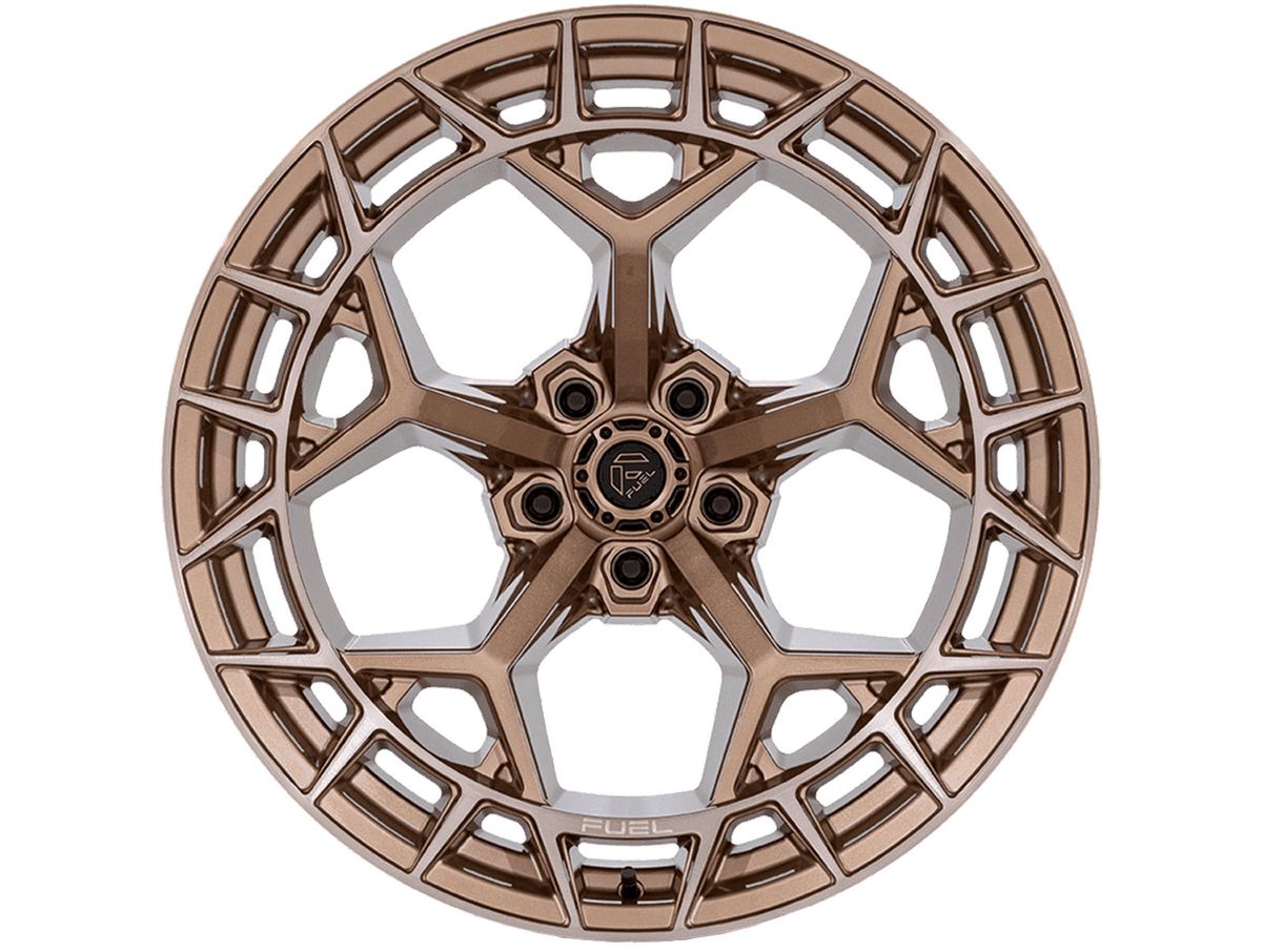 The wheel is covered in a platinum bronze finish that is enhanced by the complex outer ring. The center cap is adorned with the Fuel logo to complete the look.