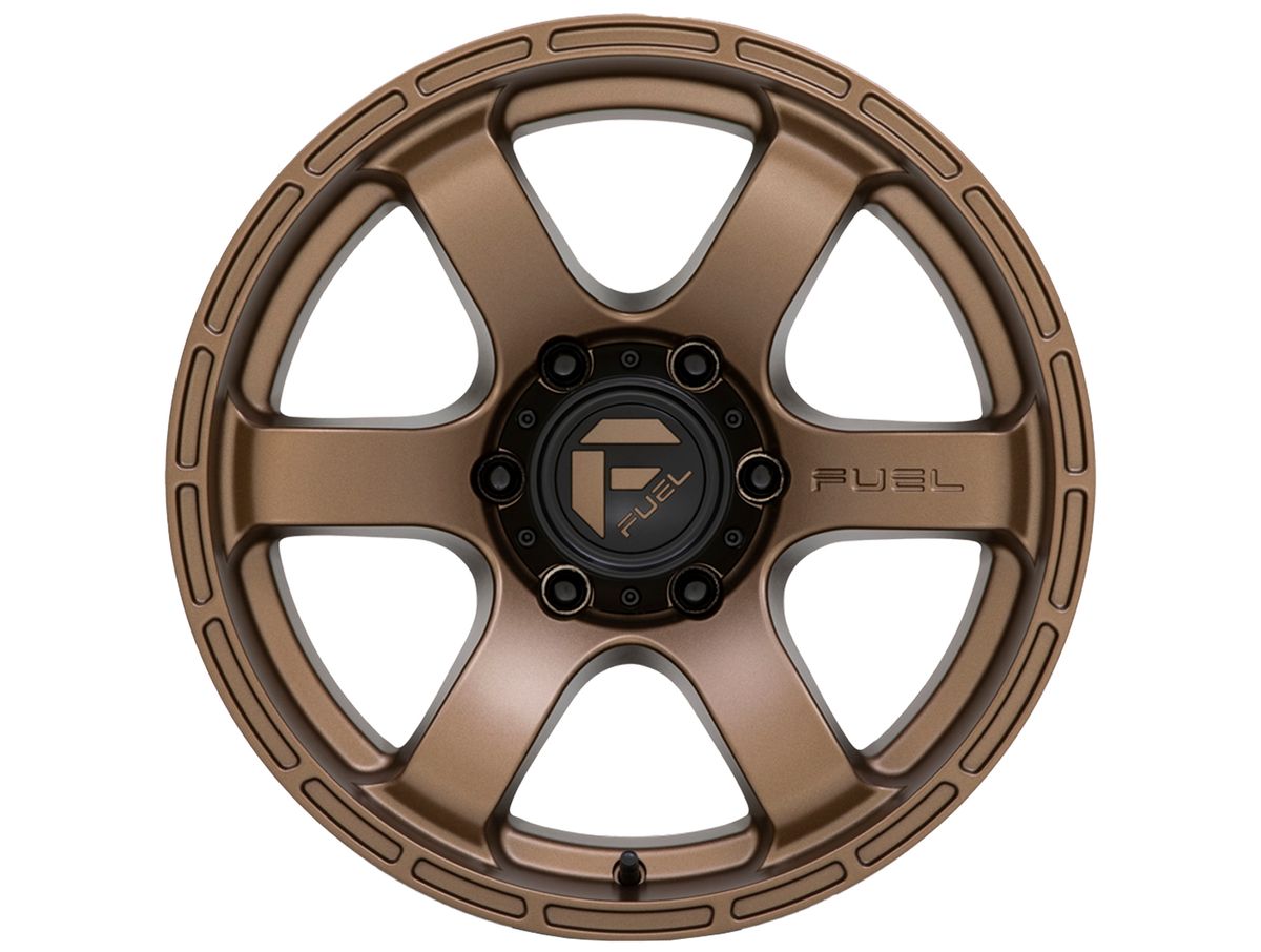 The wheel is covered in a matte bronze finish that is complimented by the debossed logo on the spoke. The center cap is adorned with the Fuel logo to complete the look.