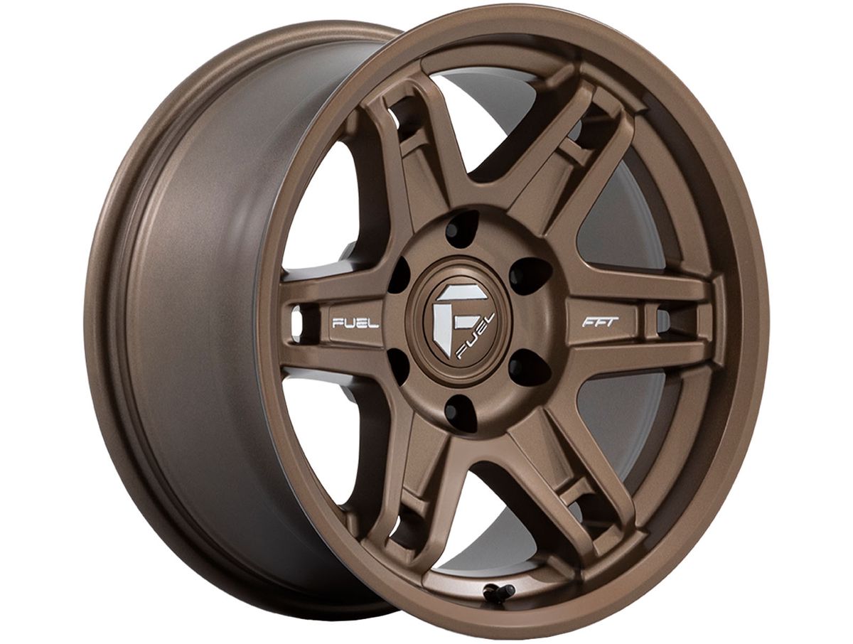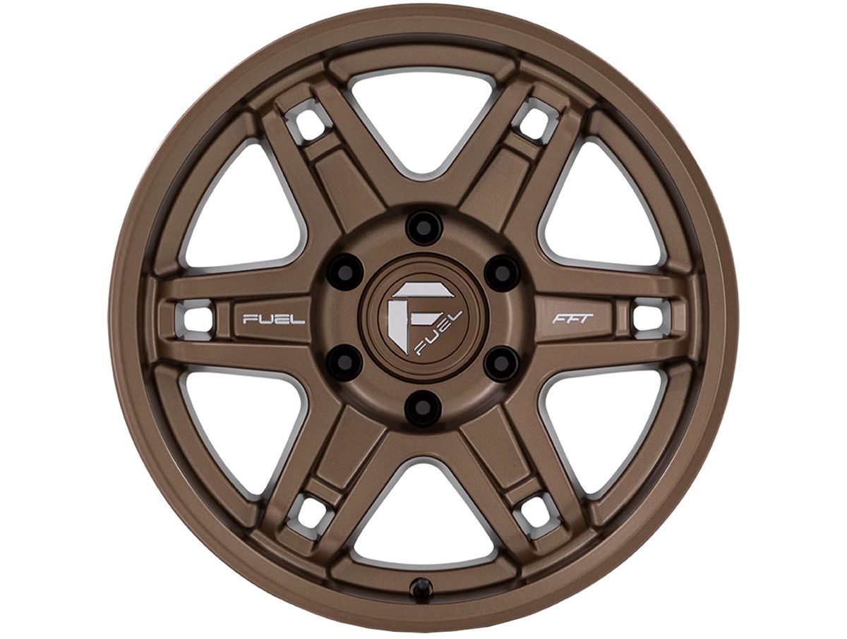 The wheel is covered in a matte bronze finish that is enhanced by the logos on the spokes. The center cap is adorned with the Fuel logo to complete the look.