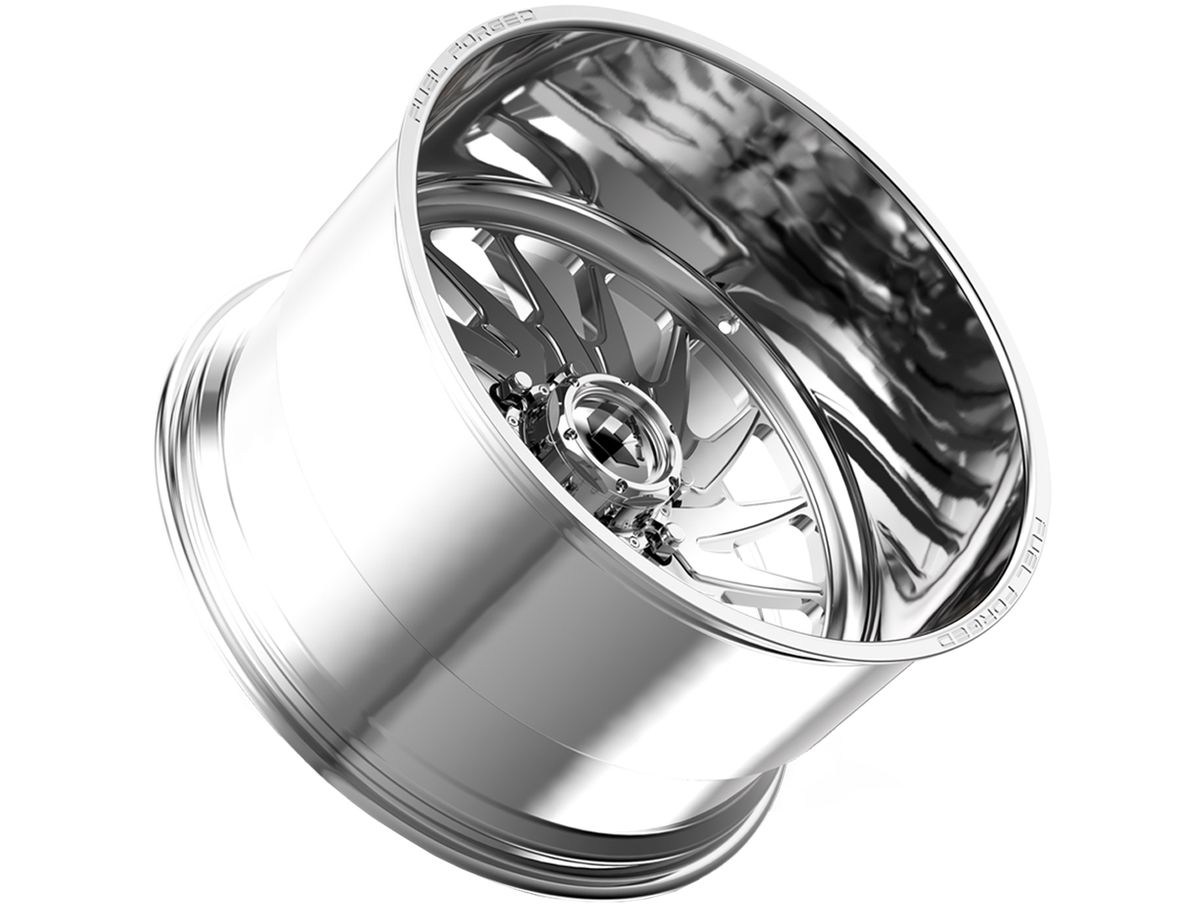 Fuel Forged Polished FF110 Shank Wheels feature blade-like spokes arranged in a true-directional pattern. The face sits deep within the lip of the wheel to emphasize the aggressive stance and offset. Deep lips and large diameters are what Fuel specialize in, and the FF110 Shank puts those features on display.