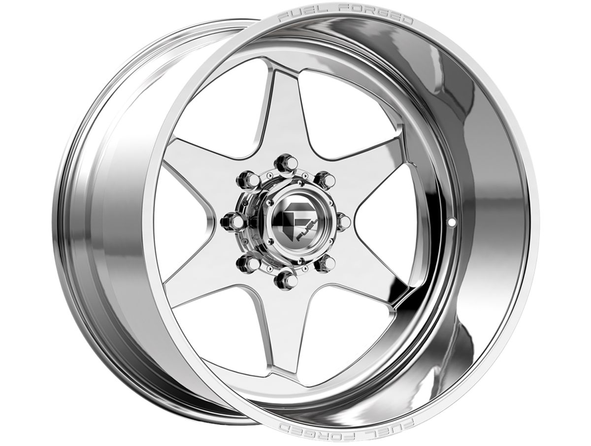Fuel Forged Polished FF115 Sift Wheels feature six bold spokes and angled millin on the inner lip, giving the wheel a directional design. The face sits deep within the lip of the wheel to emphasize the aggressive stance and offset. Deep lips and large diameters are what Fuel specialize in, and the FF115 Sift puts those features on display.