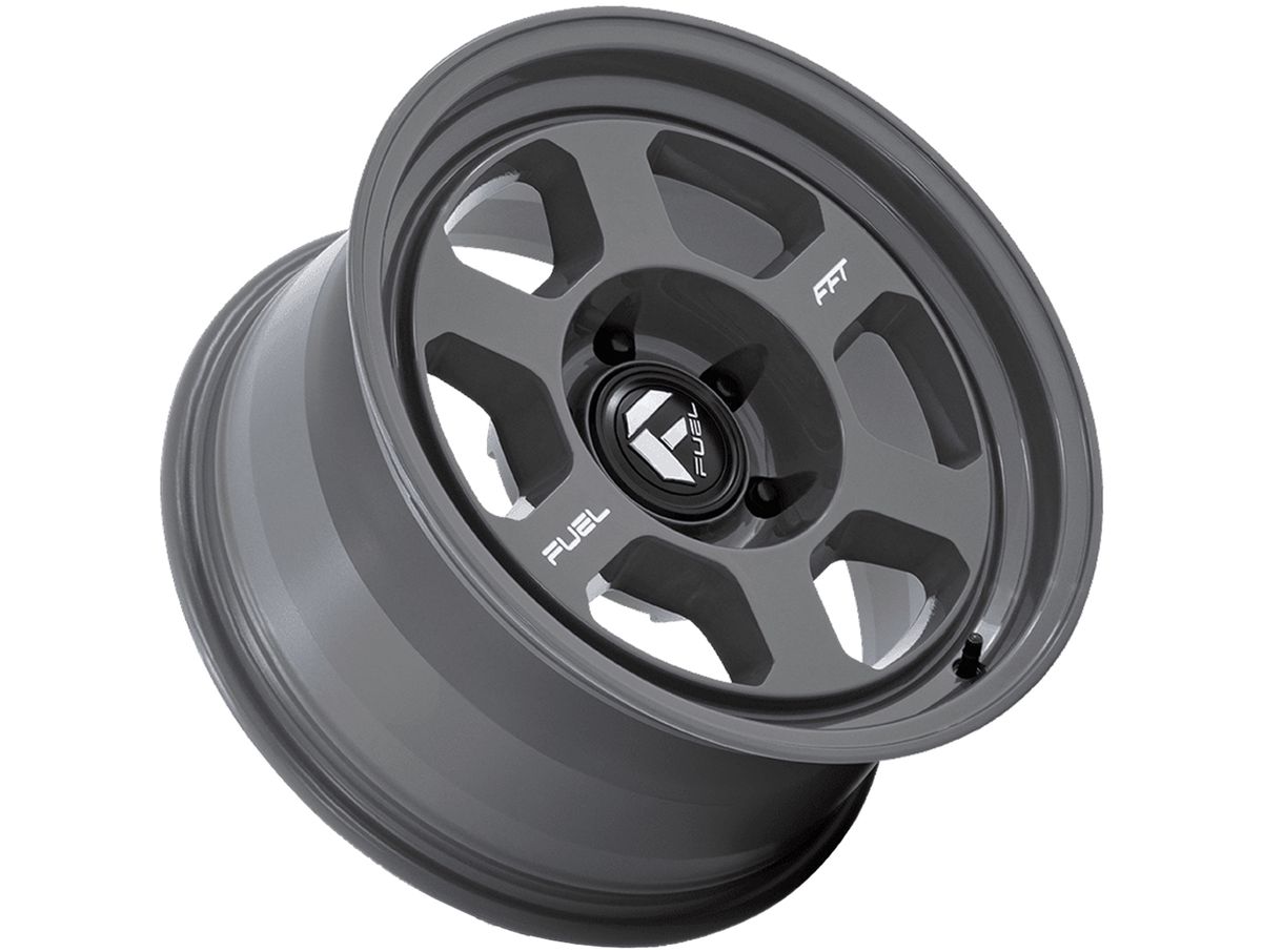 The wheel is covered in a battleship grey finish and the center cap is adorned with the Fuel logo to complete the look.