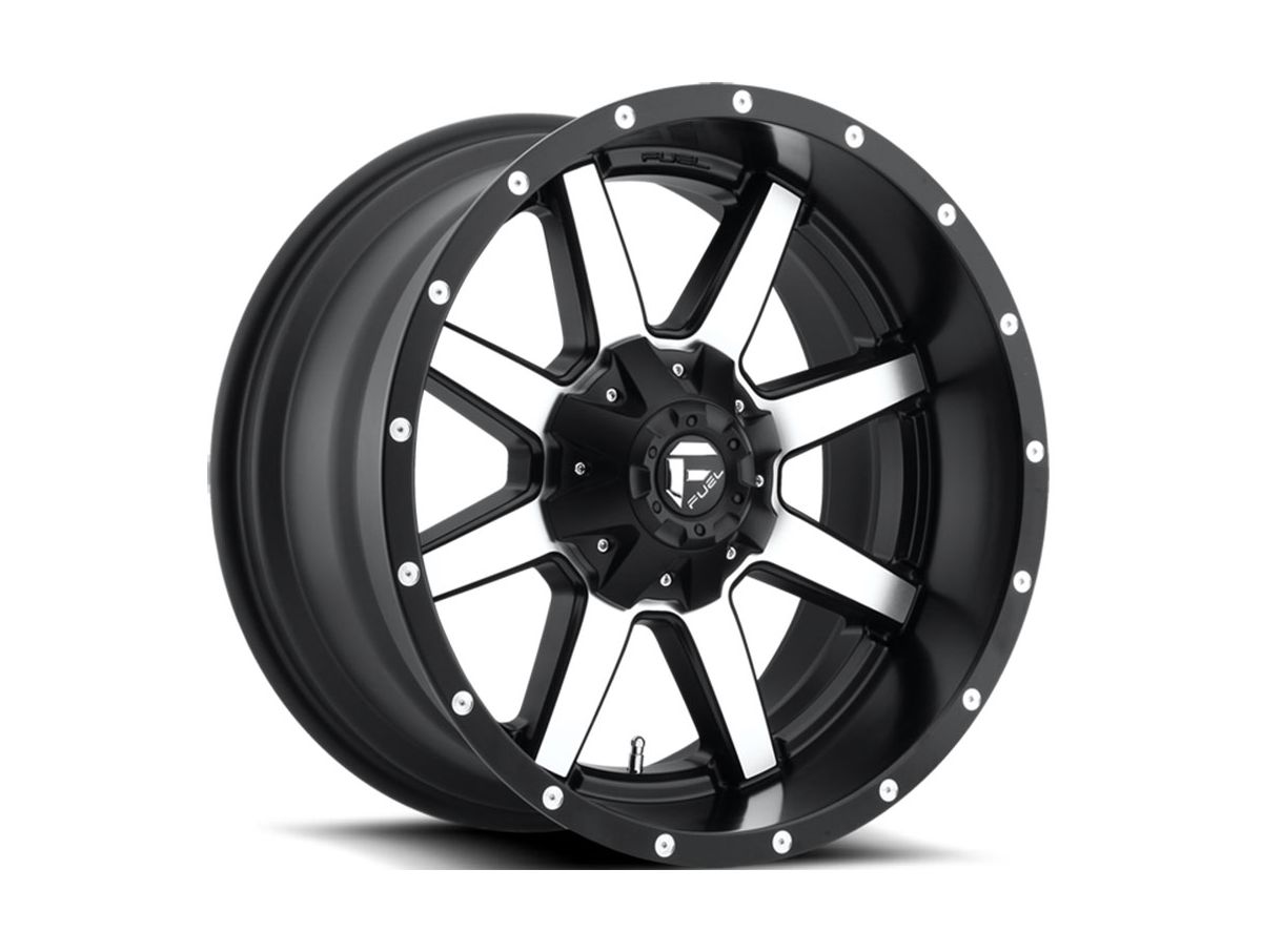 It's time to upgrade your stock truck with Fuel black & machined Maverick wheels. Constructed out of cast aluminum, that has a machined finish with a black lip. Get your head turning rims ordered today!