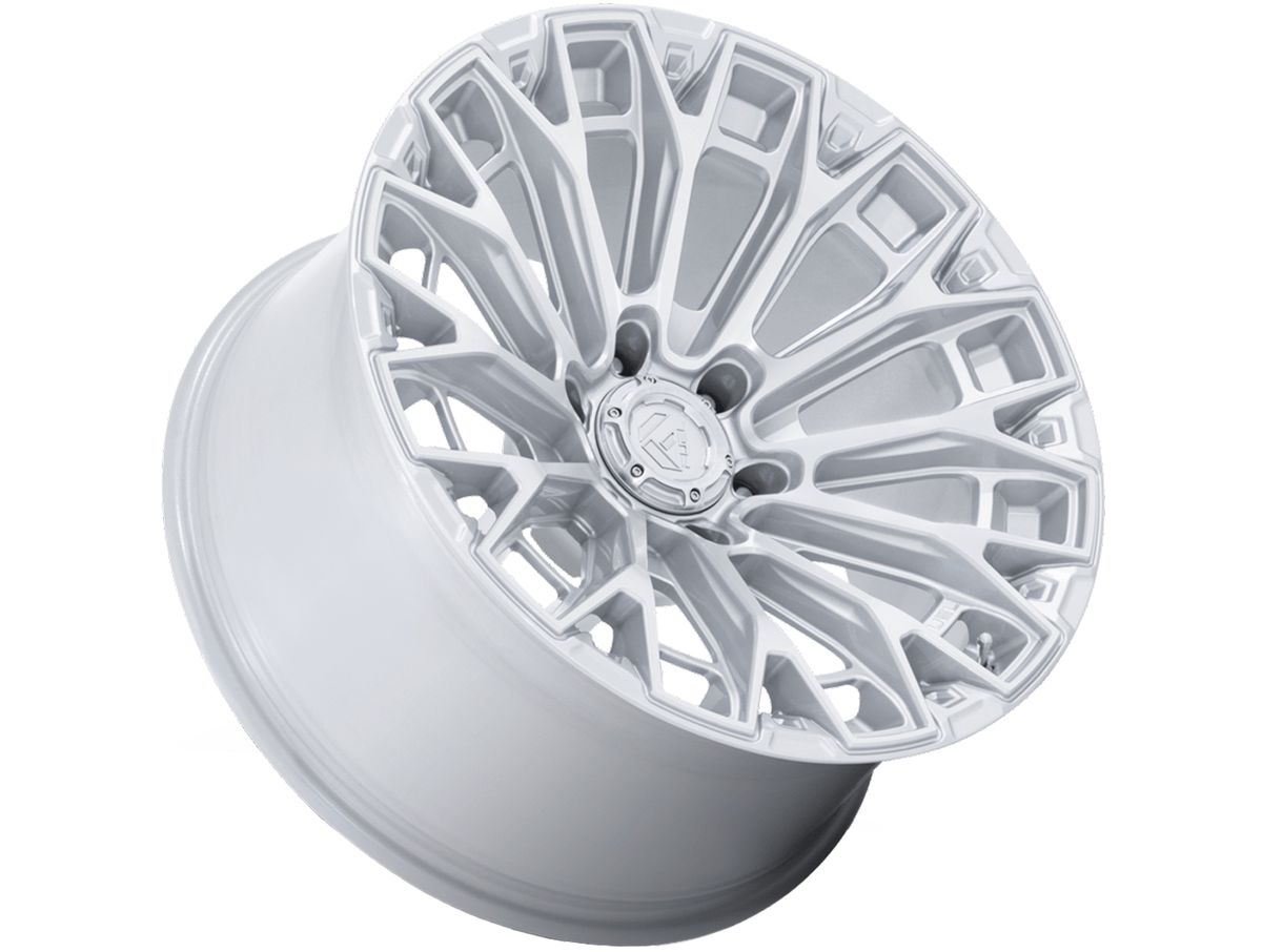 The wheel is covered in a gloss silver finish that is enhaced by the machined face. The center cap is adorned with the Fuel logo to complete the look.