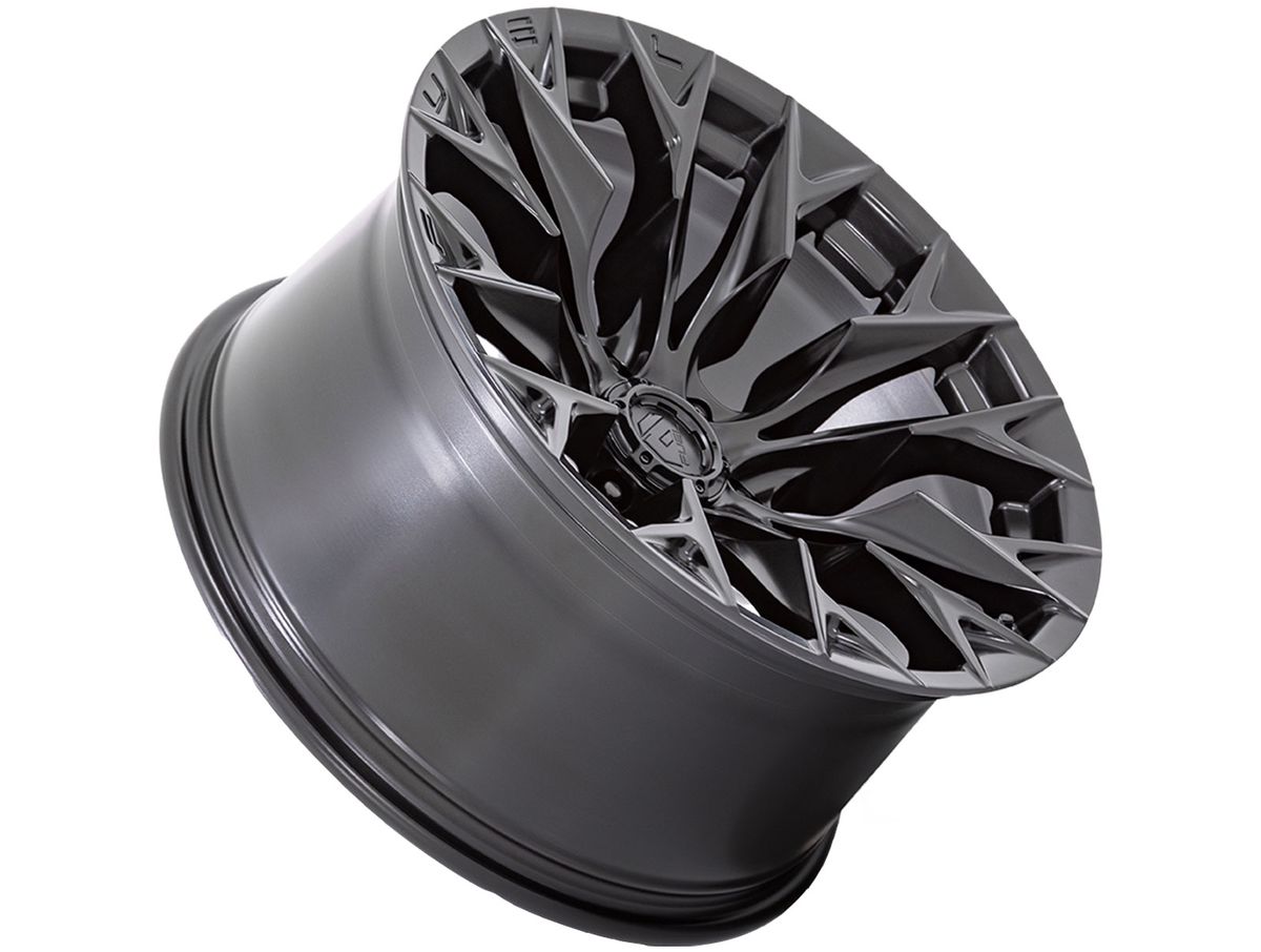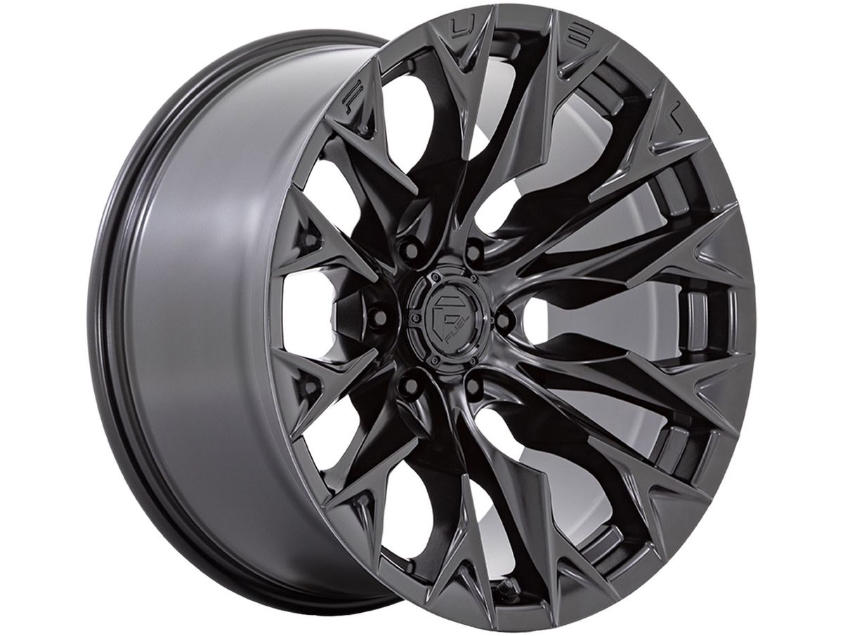 Fuel Matte Black Flame Wheels feature an aggressive convave style and thick spokes that fill up the center and leaves a window with sharp edges. The spokes sport aggressive contours. Spoked designs and large diameters are what Fuel Off-Road specializes in, and the Flame puts those features on display.