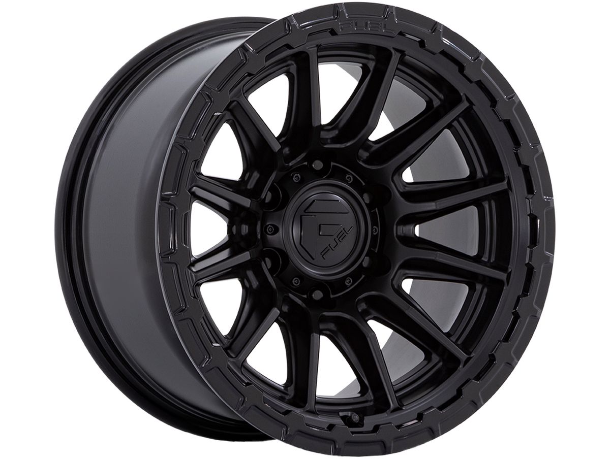 The wheel is covered in a blackout finish that is enhanced the black simulated beadlock ring. The center cap is adorned with the Fuel logo to complete the look.