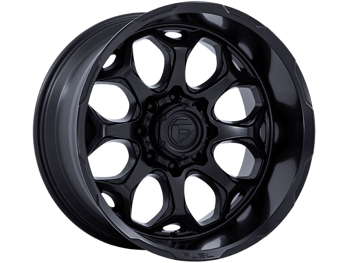 Fuel Matte Black Scepter Wheels feature a split spoke face creating a mesh-like design. The lip of the wheel is deep to emphasize an aggressive stance and offset. Deep lips and large diameters are what Fuel specialize in, and the Scepter puts those features on display.