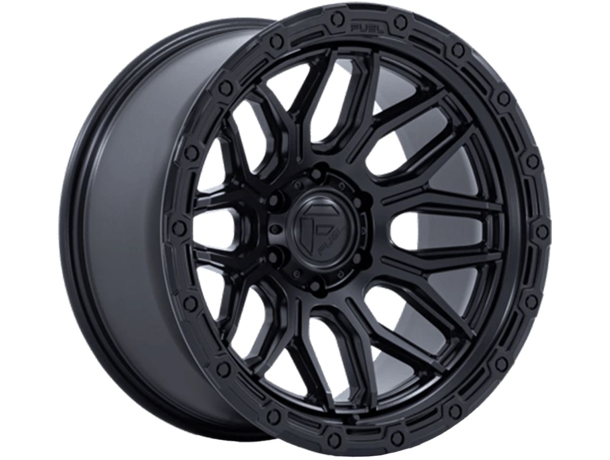 Each spoke features unique contoured accents that wrap toward the center of the wheel and meet at the center cap. The wheel is covered in a satin black finish that is offset by the simulated beadlock ring around the outer edge. And to complete the look, the center cap is adorned with the Fuel logo.