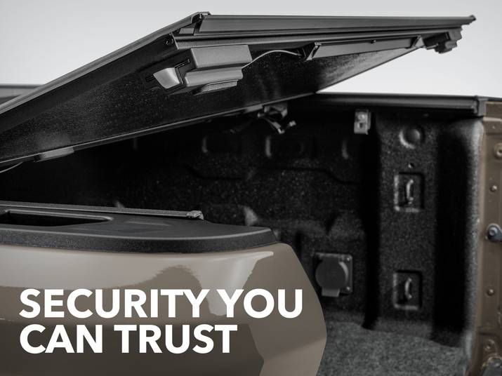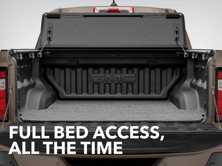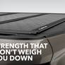 Full bed access is a hallmark of the Gator FX, making loading and unloading cargo a breeze. Simply release the pull latches at the tailgate and fold the cover toward the cab to access your valuables. Secure it in either the ⅔ open position with the integrated buckle straps or fully open with the built-in prop rods for complete access.
