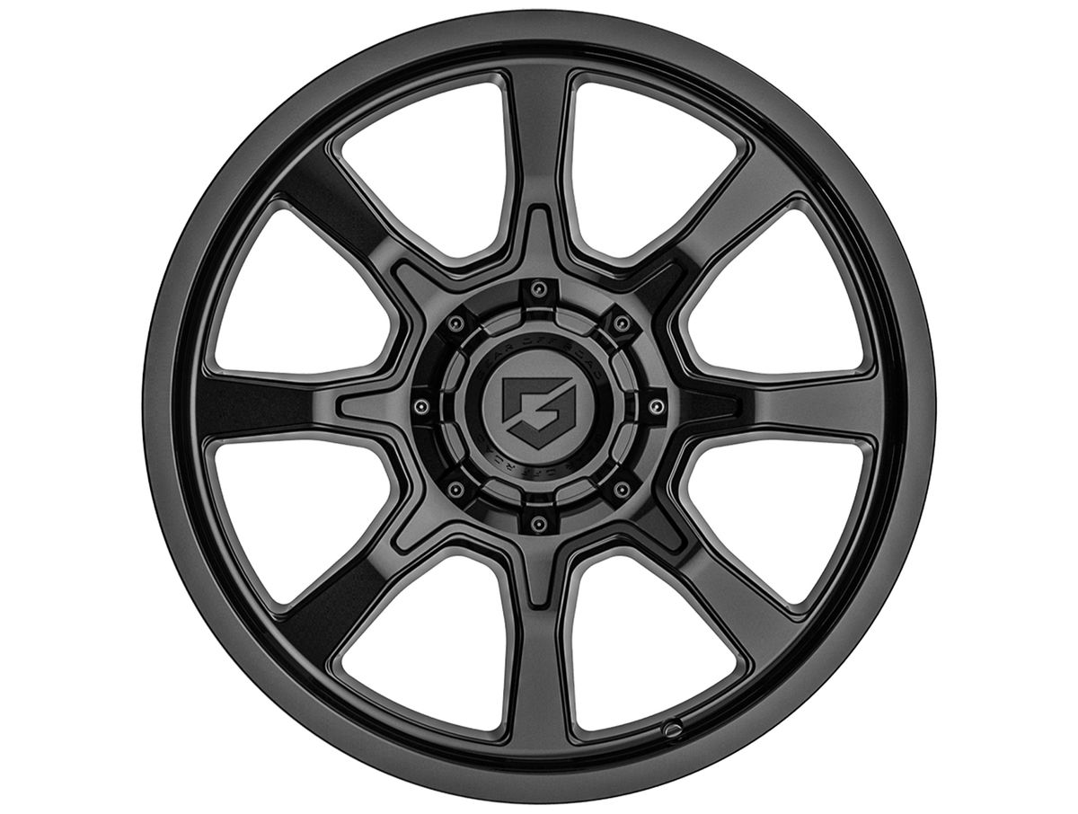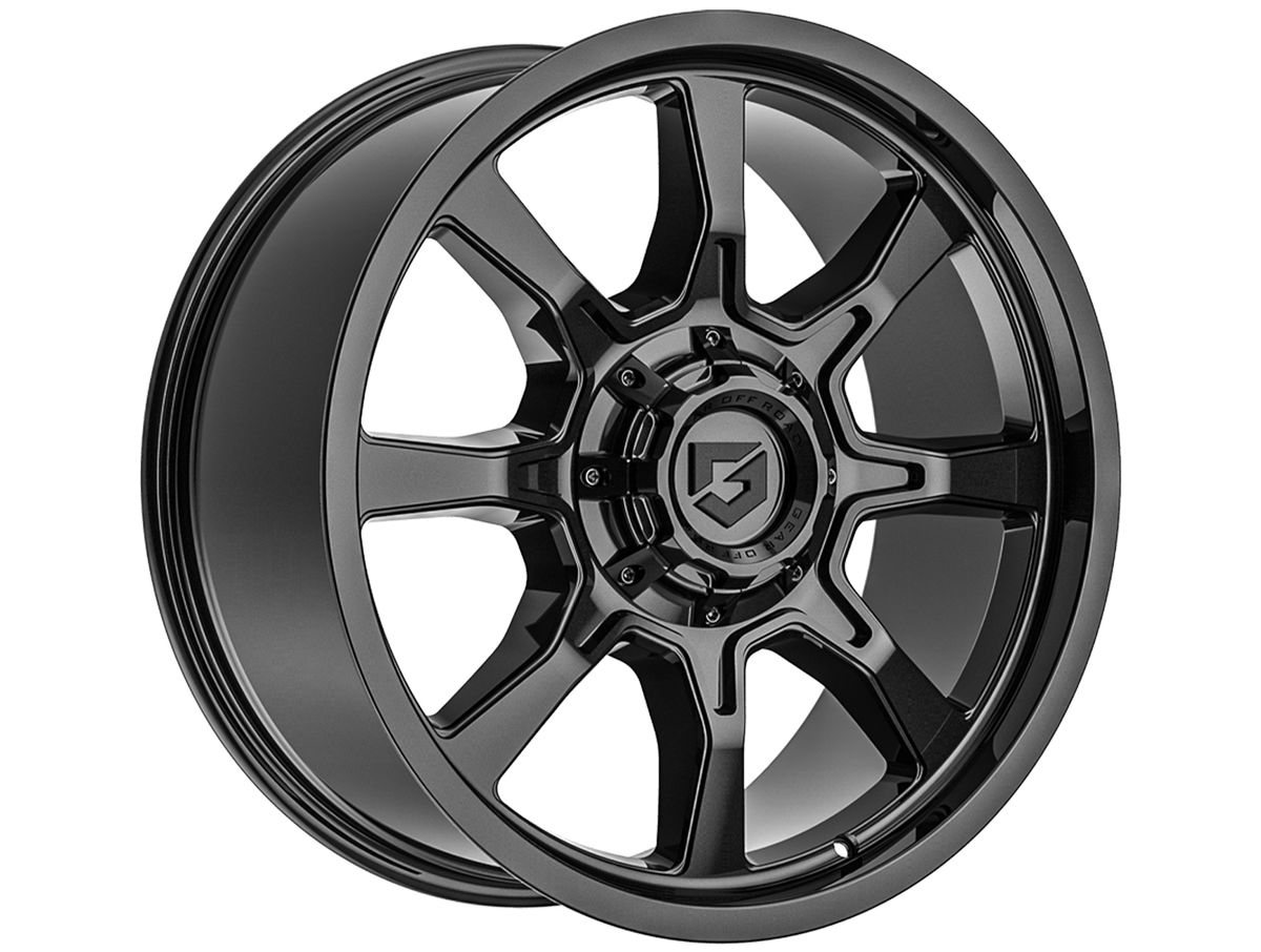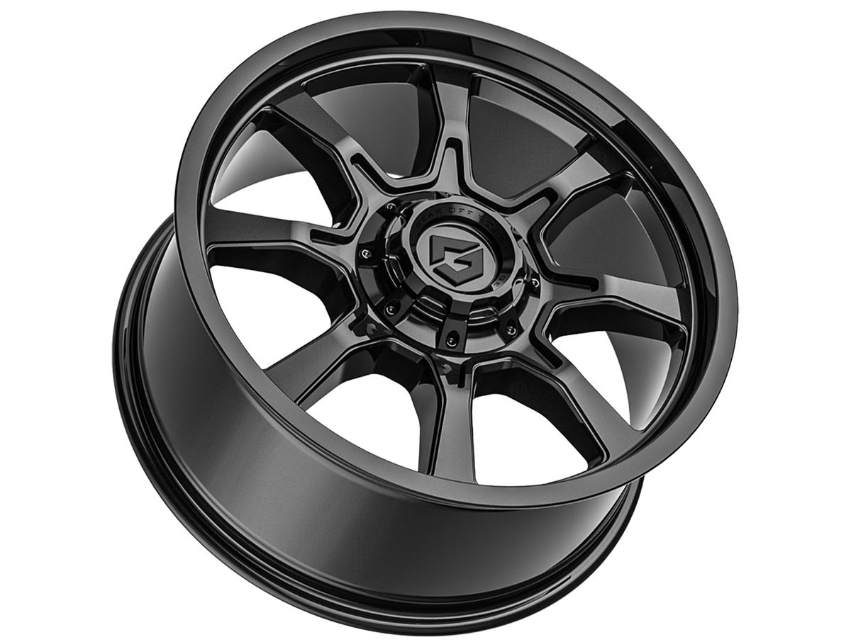 Gear Off-Road Gloss Black Glock Wheels feature eight bold spokes that flare out as they extend to the barrel. Each spoke is bent creating depth and complexity. Spoked designs and off-road styles are what Gear Off-Road specialize in, and the Glock puts those features on display.