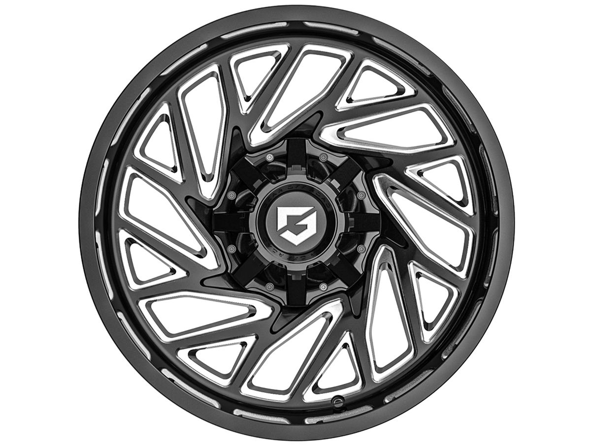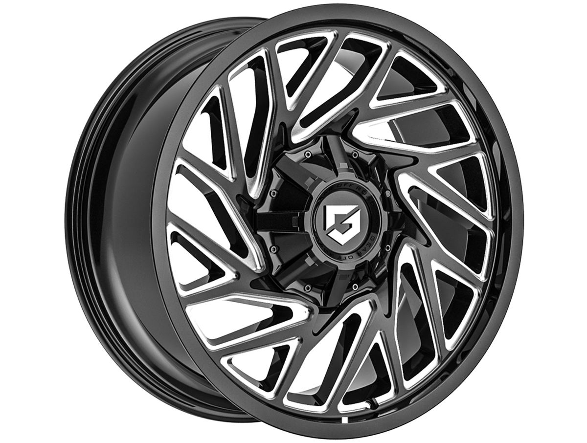 The wheel is covered in a gloss black finish that is enhanced by the intricate milling in the spoke windows. The center cap is adorned with the Gear Off-Road logo to complete the look.