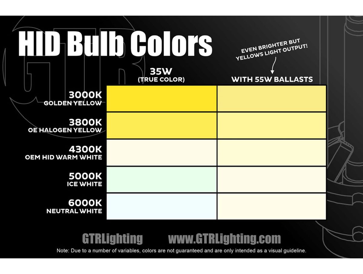 Each bulb is laser aligned into its base so that the focal point of the HID bulb precisely matches the focal point position of the halogen bulb, ensuring optically correct beam patterns. When you plan on installing this HID bulb into your vehicle's fog lights, you can be certain that light is going to go where it's meant to be. These Ultra HID light bulbs come in six differnt colors: Golden Amber, Golden White, Warm White, Ice White, Neutral White & Ice Blue.