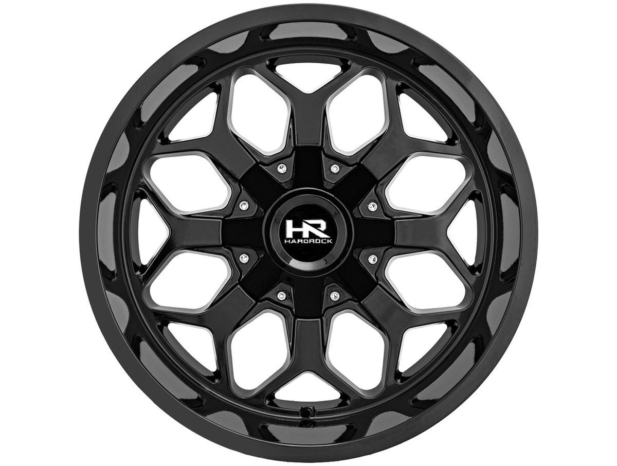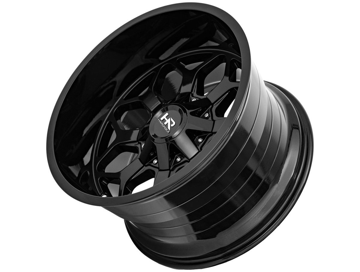Built to last, each wheel is made from a durable cast aluminum in a one-piece construction. The wheel is covered in a gloss black finish. And to complete the look, the center cap is adorned with the Hardrock logo.