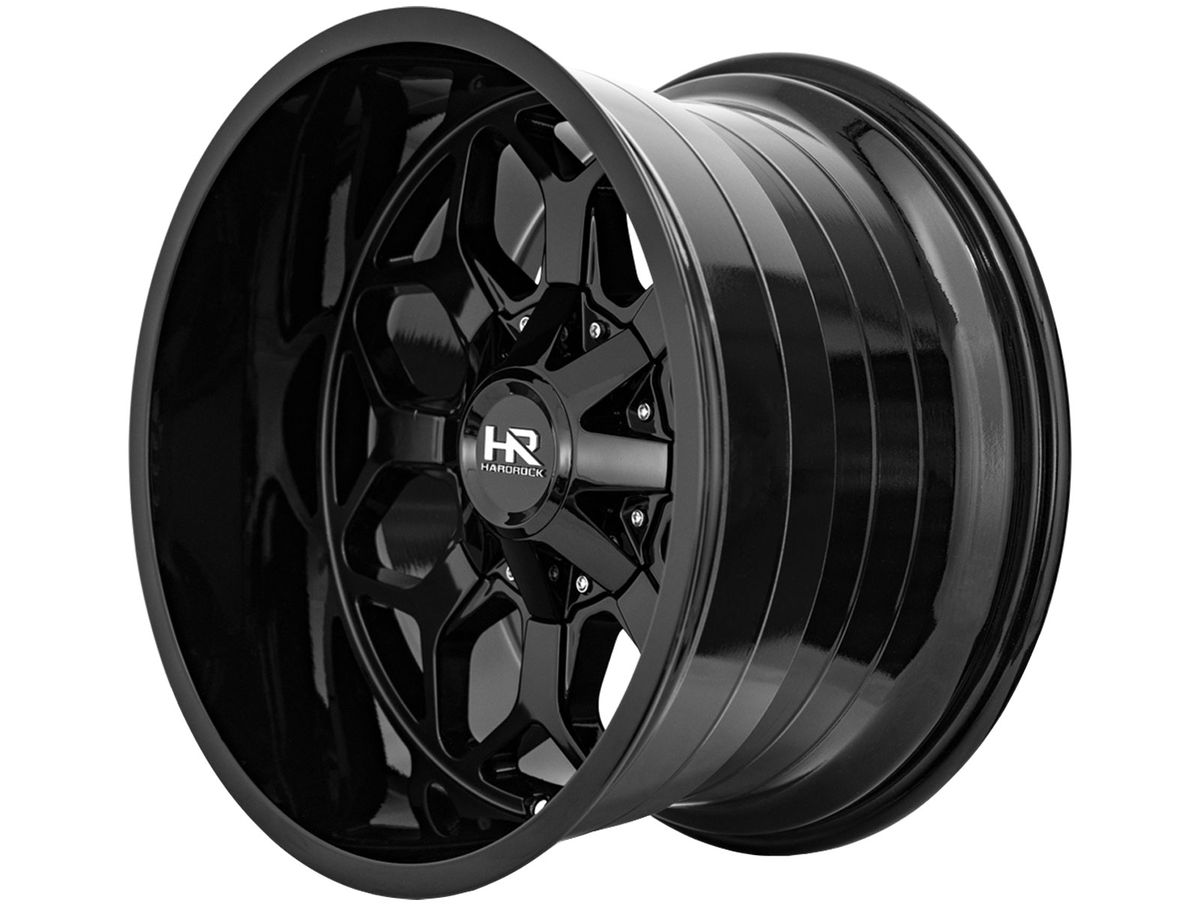 Hardrock Gloss Black Indestructible Wheels feature a slightly convex face to emphasize the depth of the smooth lip for an aggressive stance and offset. The split spokes feature unique contours to create depth and style on the face of the wheel. Deep lips and large diameters are what Hardrock specializes in, and the Indestructible puts those features on display.