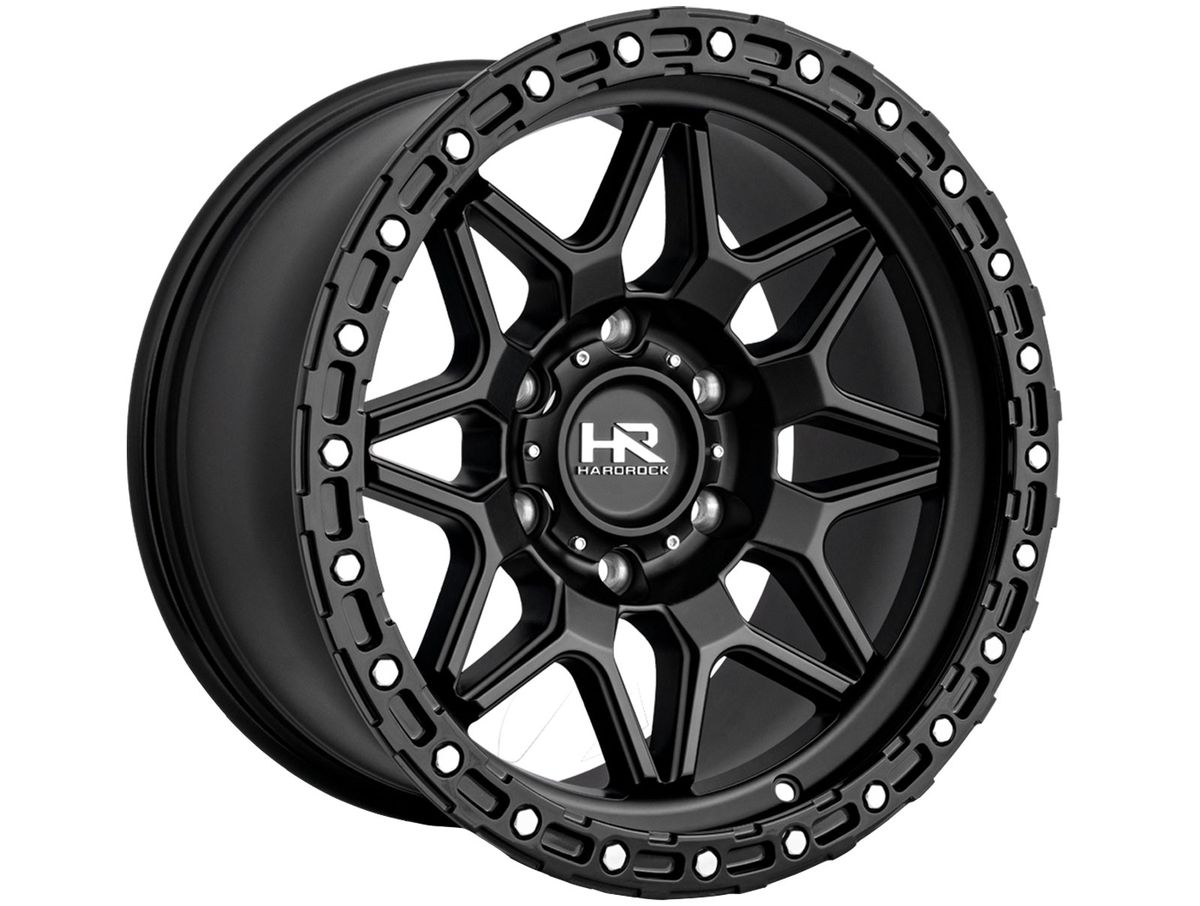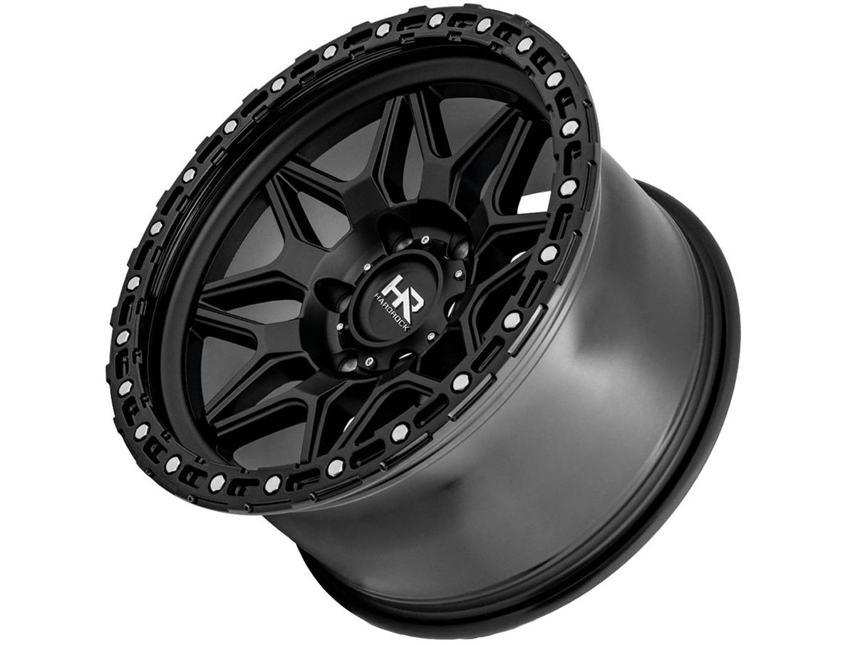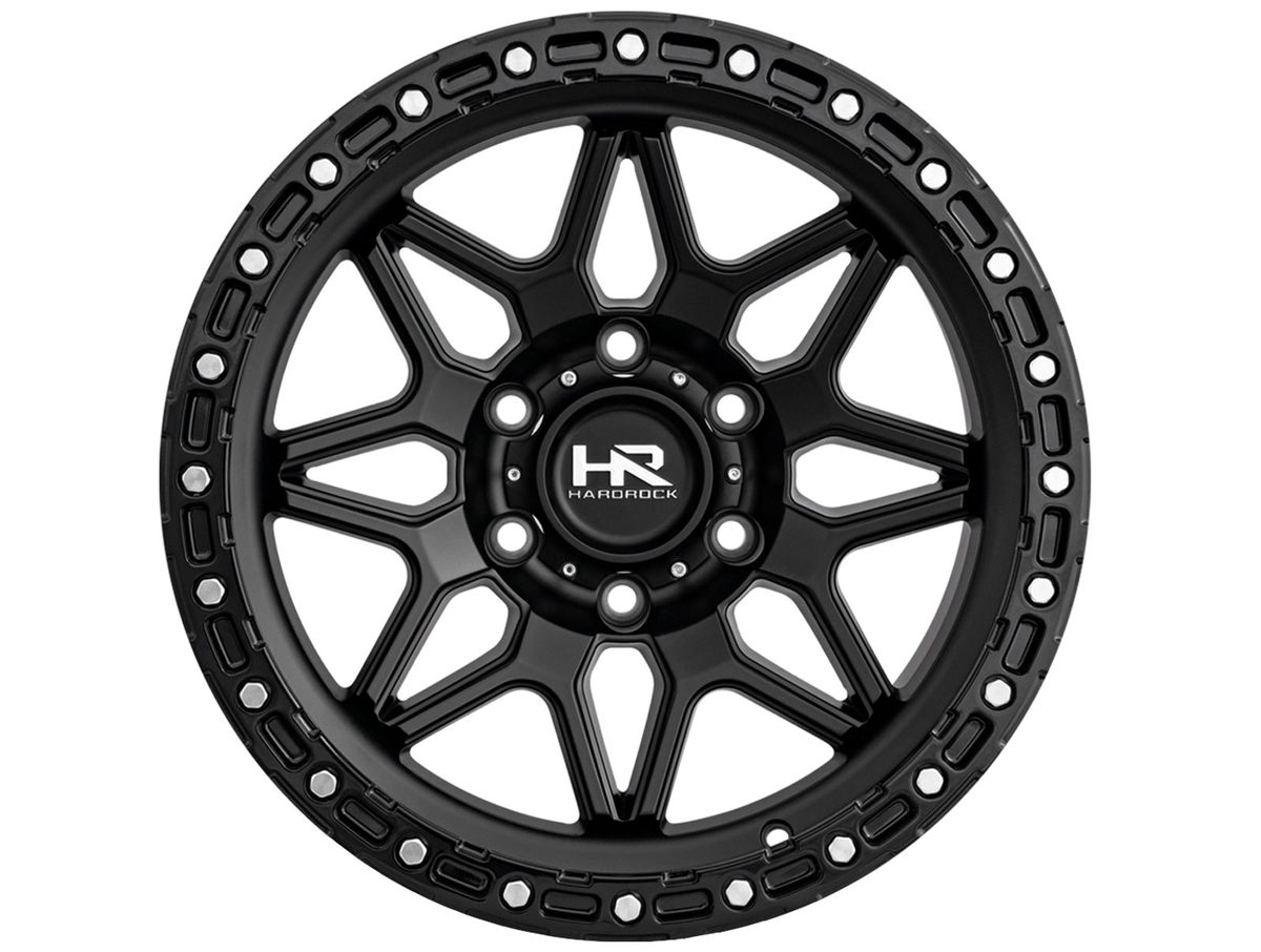 Built to last, the wheel is a one-piece construction made from a durable cast aluminum. The wheel is then covered in a matte black finish that is offset by the simulated bead ring around the outer edge. The center cap is adorned with the Hardrock logo to complete the look.