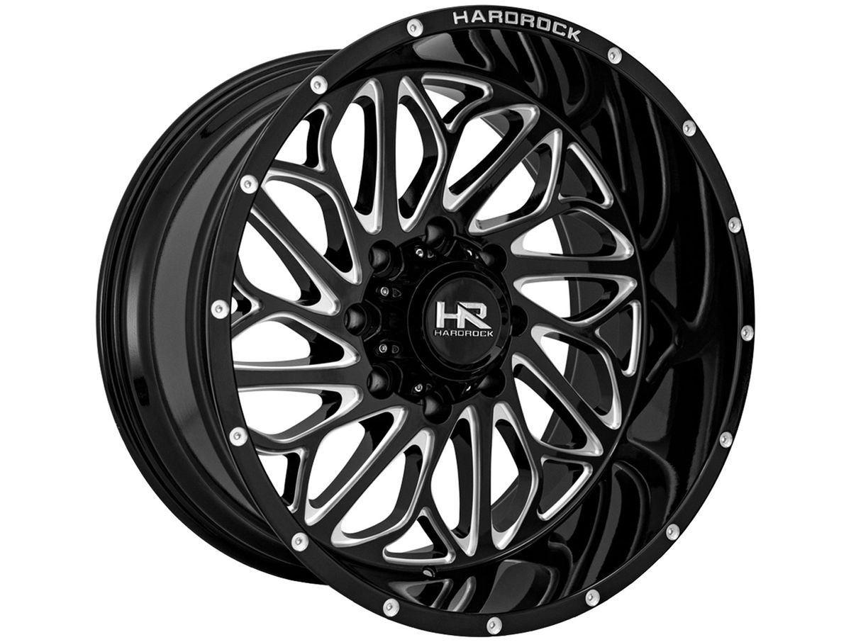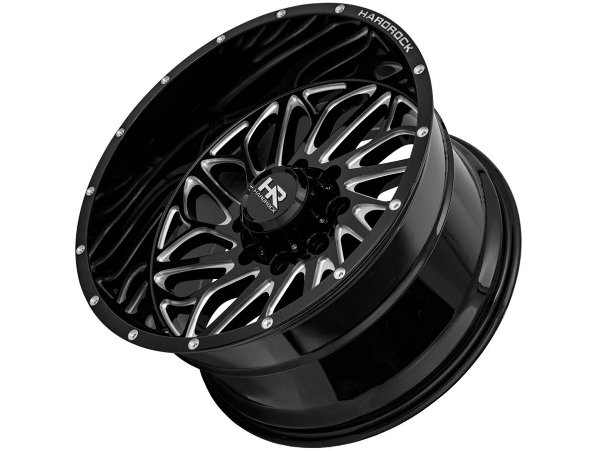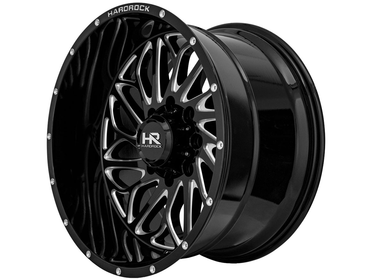 Hardrock Milled Gloss Black BlackTop Wheels feature an aggressive rotational style and creative design using dynamic spokes sharp angles to separate the wheel from the rest. The spokes sport aggressive contours and milled accents. Deep lips and mesh designs are what Hardrock specializes in, and the BlackTop puts those features on display.