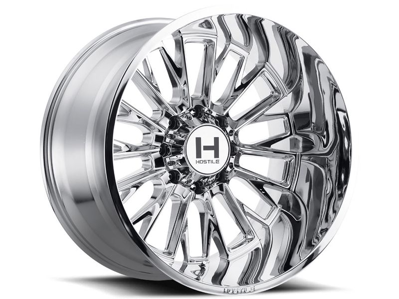 These Fury Wheels are covered in a chrome finish from front to back with a smooth lip that is adorned with the Hostile logo. Constructed of one piece cast aluminum, these wheels provide a sporty look and impressive strength.
