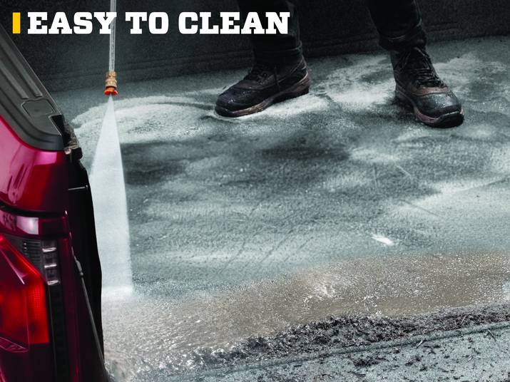 Cleanup is quick and effortless. Whether you’re hauling loads of dirt, muddy hiking boots, or slushy winter gear, a quick hose-down removes debris, mud, and grime—no need to strip the liner.