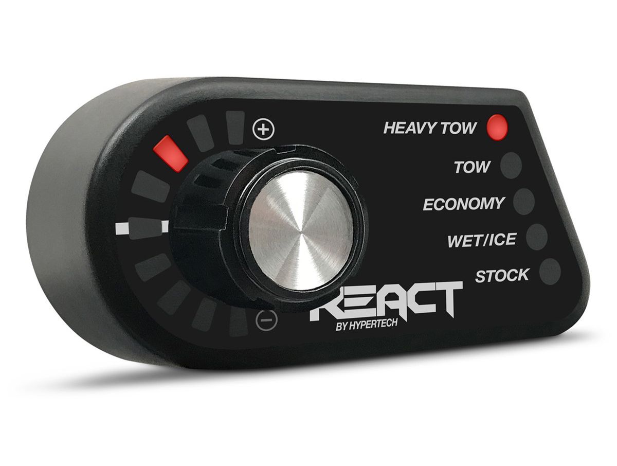 REACT is Hypertech's innovative new throttle optimizer which combines Hypertech's history of award winning Engineering and exciting performance. The REACT offers full customizable control over your vehicle's throttle response. The simple control allows you to switch between multiple modes and control the intensity of each mode on-the-fly. Adjustments range from Economy Track by a simple control knob. There's even a tow version of the REACT with adjustment ranges from Heavy Tow, Mileage, to Wet/Ice.