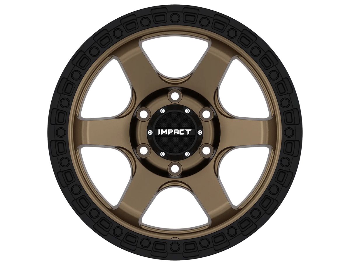 Impact Off-Road Bronze 8805 Wheels feature a slightly concave face to emphasize the aggressive stance and offset of the wheel. The 6 spokes fill the face of the wheel with soft, clean lines. Race designs and spoked styles are what Impact specialize in, and the 8805 puts those features on display.