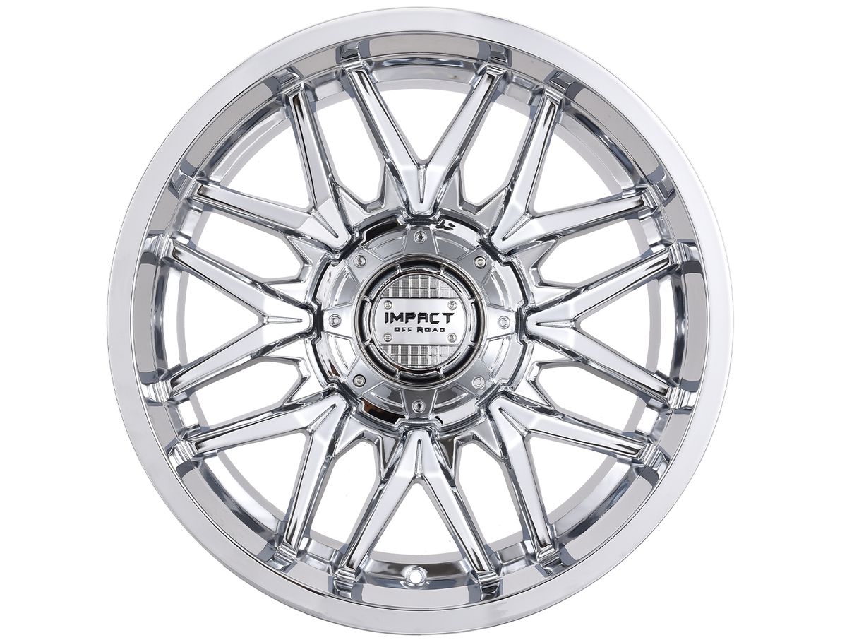 Impact Off-Road Chrome 819 Wheels feature a modern y-spoke design that sits deep in the barrel of the wheel. Each spoke branches and bends in unique ways which creates many unique sharp angles. Off-road wheels and spoked designs are what Impact Off-Road specialize in, and the 819 puts those features on display.