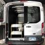 Introducing National Fleet new van step. Safety is one of National Fleets number one concerns when making their products. They design these steps with that in mind. They have constructed these steps with steel mounting plates and an all-aluminum construction, ensuring it will hold up over time. It comes coated in safety yellow for better visibility along with an all-weather anti-slip perforated step texture, making sure you'll have a safe footing every time you step on and off. The step is 20" wide with a depth of 9" and only 12" from the ground when deployed. National Fleet has also designed their steps to be easily removable with quick release pins. When folded up into the van, the step only takes up 8.5" of interior depth, staying out of your way while also allowing you more room for your cargo. National Fleet offers you four mounting position options, depending on what kit you go with: Passenger-side rear, center rear, driver-side rear or side door.