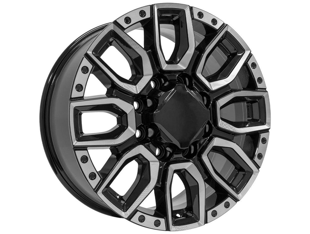 The wheel is covered in a gloss black finish that is offset with spot milled accents around the outer edge. And to complete the look, the center cap stays true to the OE replica style.
