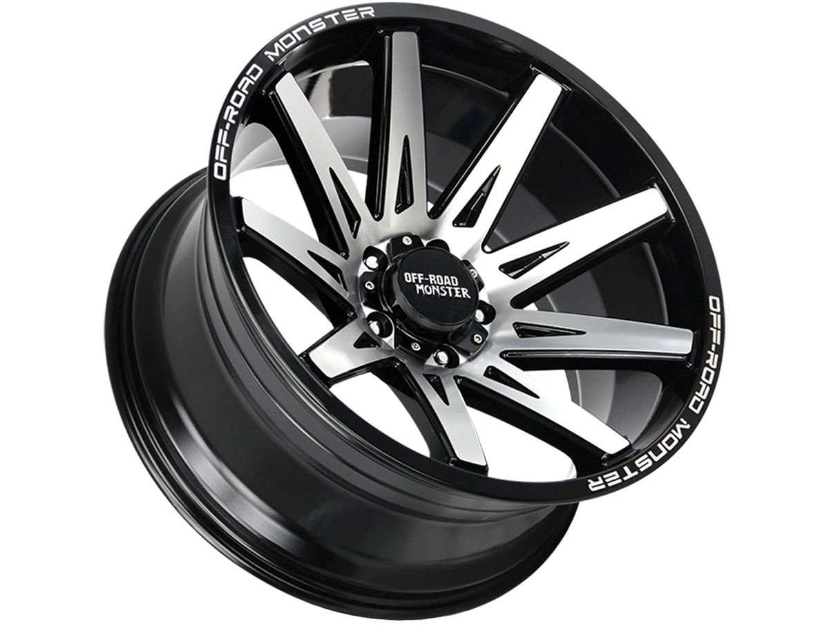 Made to last, each wheel is made of a durable cast aluminum in a one-piece construction. The wheel is covered in a gloss black finish that is enhanced by the machining on the spokes. And to finish off the look, the center cap is adorned with the Off-Road Monster logo.