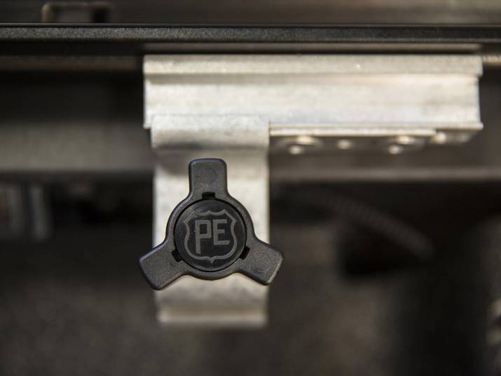 Operating the Pace Edwards UltraGroove is quick and easy. With a single turn of the lock knob located beneath the cover, the latches release, allowing the cover to slide effortlessly into a bulkhead-mounted canister. A quick tug of the integrated pull strap brings the cover back toward the tailgate—along the way, stops located every 12 inches provide multiple locking positions, granting partial bed coverage.