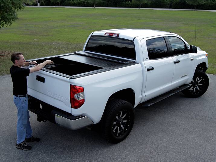 This premium retractable tonneau cover features a rugged and lightweight aluminum slat construction. These slats offer excellent theft resistance and overall durability, keeping your cargo protected against everything from would-be thieves to falling branches! All alloy components receive a heavy-duty black powder coat finish, guarding against corrosion and providing a sleek, stealthy appearance.
