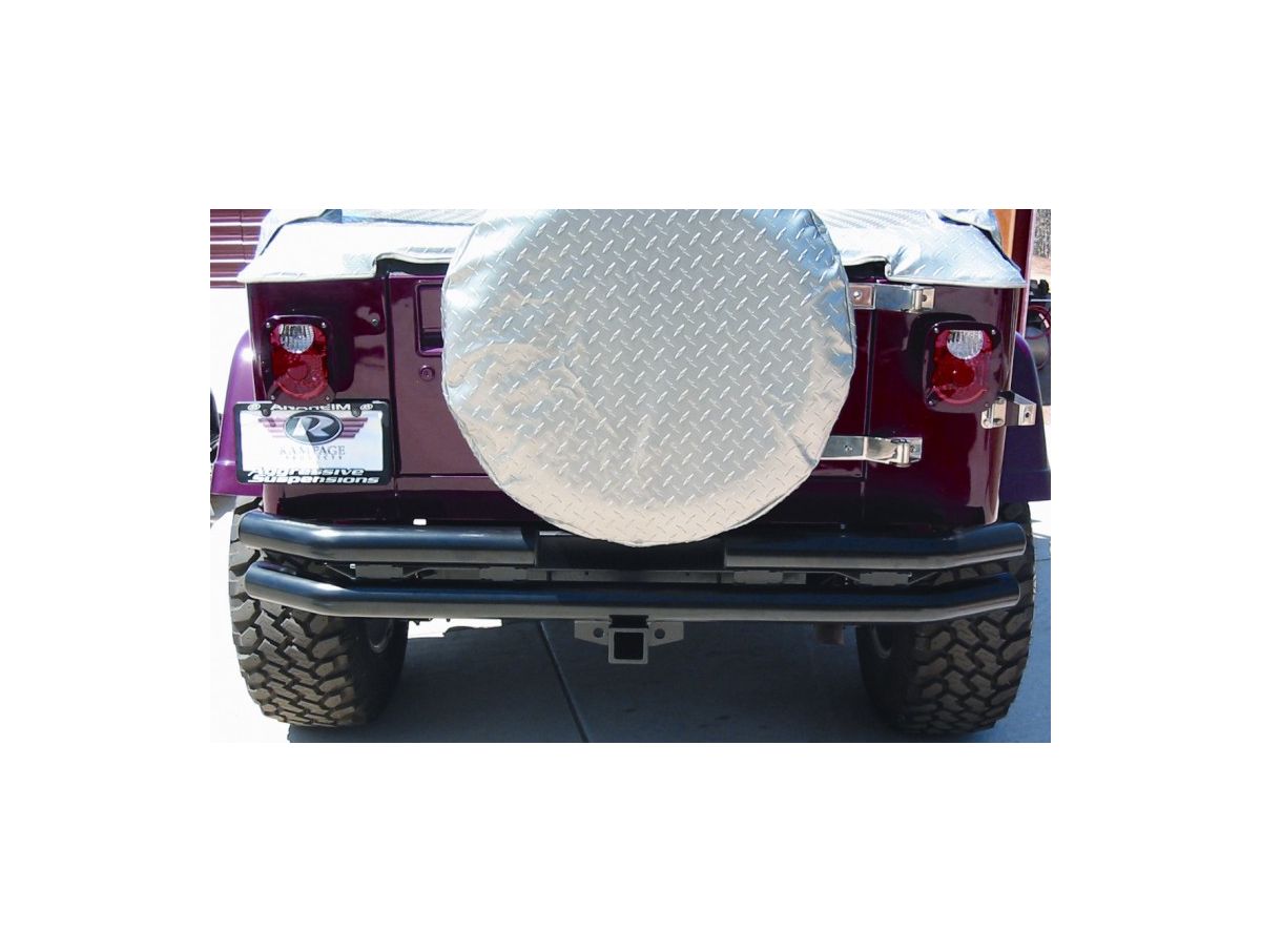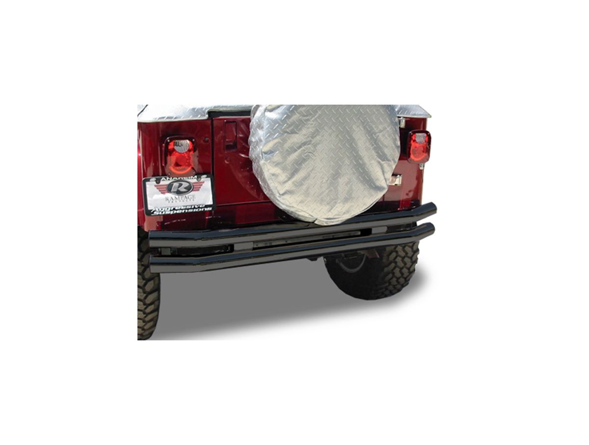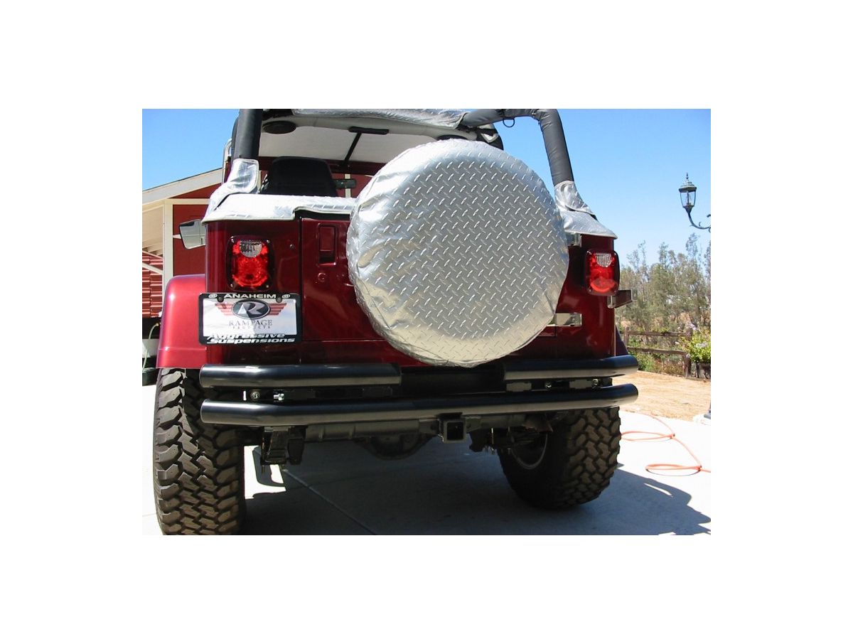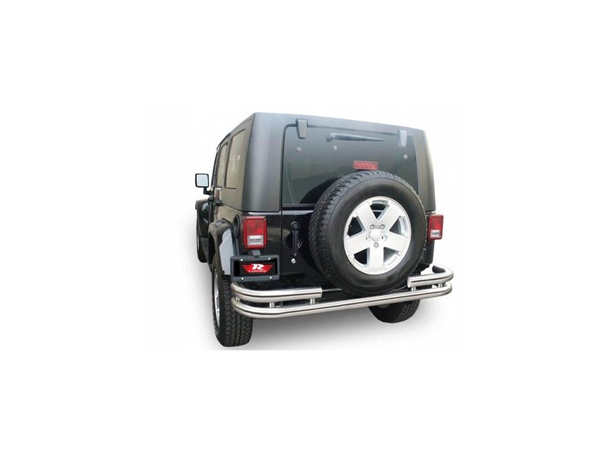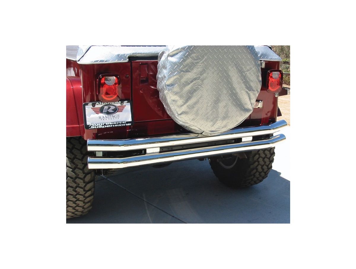 Black powder-coat bumpers are treated with a zinc undercoating before receiving a dual powder-coat finish which increases durability and longevity. Stainless steel bumpers are made from T-304 stainless steel and a polished to a mirror finish. Stainless steel bumpers have a limited lifetime never rust guarantee. Jeep Wranglers are happiest when driven hard. So, don't trust your Wrangler to any old bumper; trust your Wrangler to Rampage. Rampage knows how to protect your Jeep, and a Rampage Jeep Tubular Double Tube rear bumper is exactly what your Wrangler deserves.