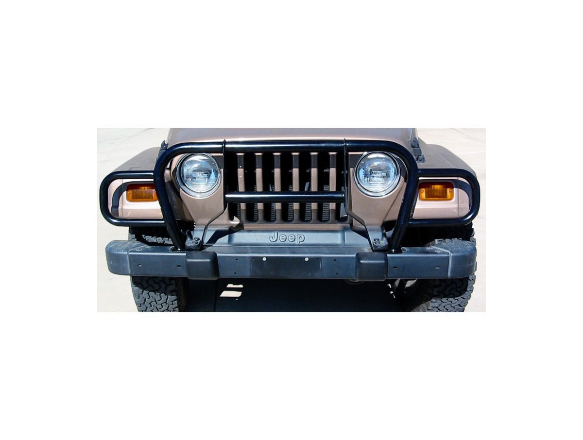 Protect your Jeep® Wrangler YJ or TJ's front end in style with the Rampage Euro-Style Jeep Grille Guard from RealTruck®. Featuring a timeless tubular design, durable one-piece construction, and effortless installation, the Rampage Euro-Style Jeep Grille Guard is the perfect addition to any Wrangler, whether a dedicated wheeler or a weekend cruiser.